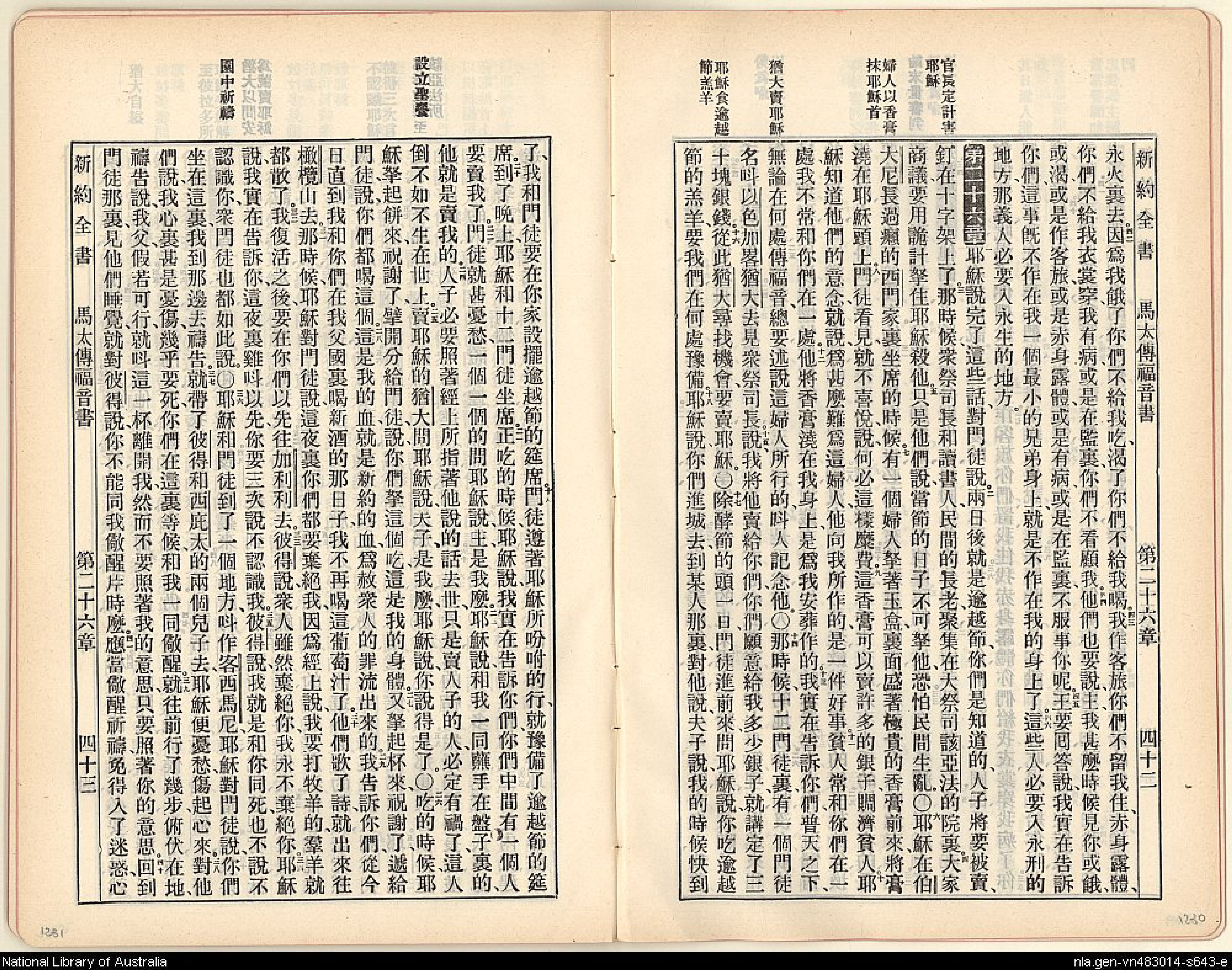1905年舊約全書 馬太福音 25 章 42 節到 26 章 41 節