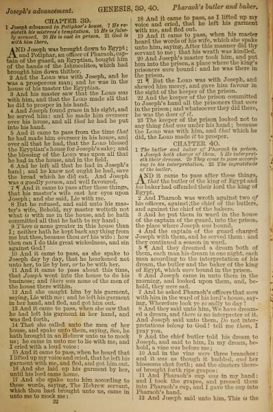 1886年英文聖經 創世記 39 章 1 節到 40 章 12 節