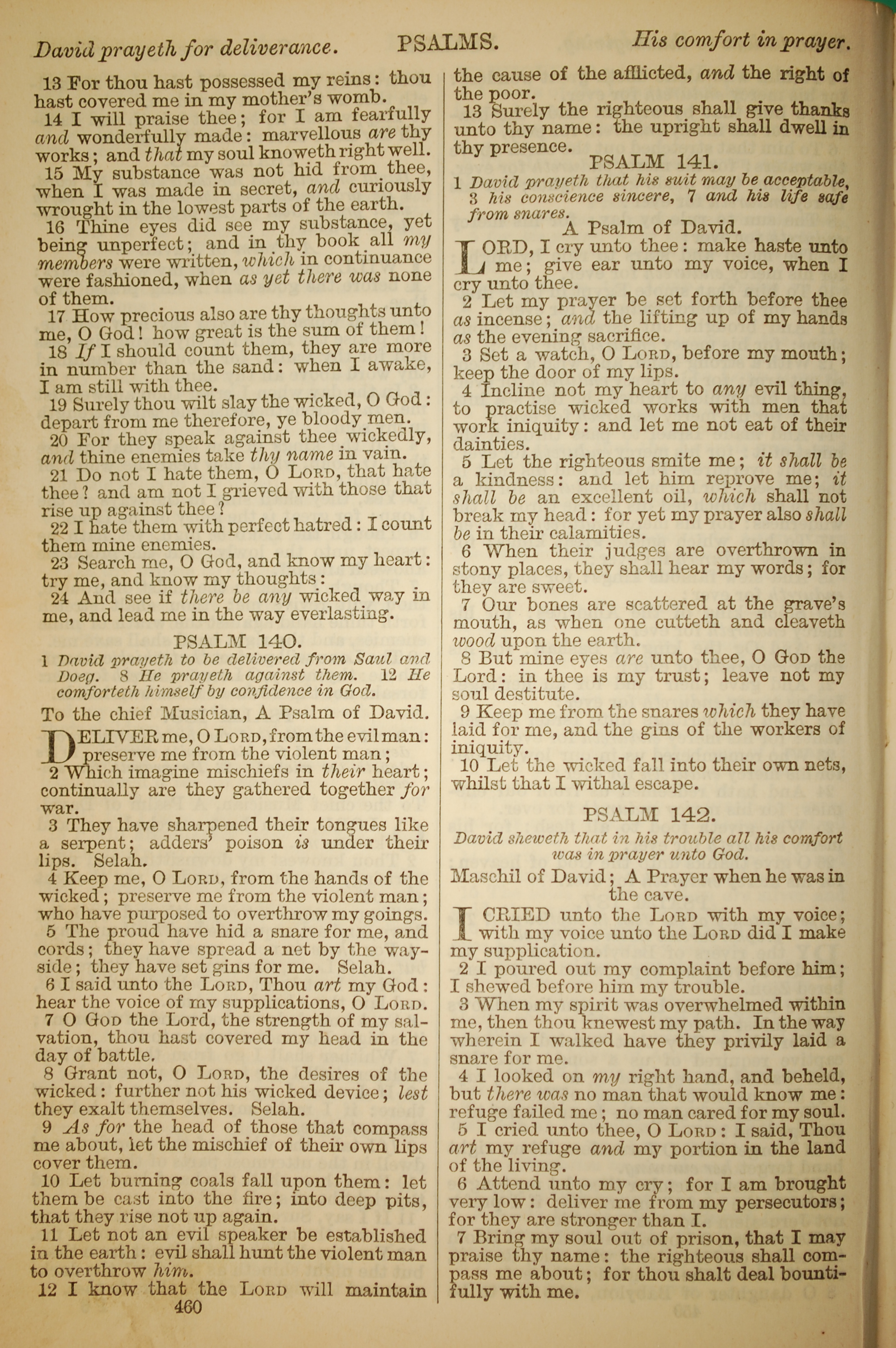 1886年英文聖經 詩篇 139 章 13 節到 142 章 7 節