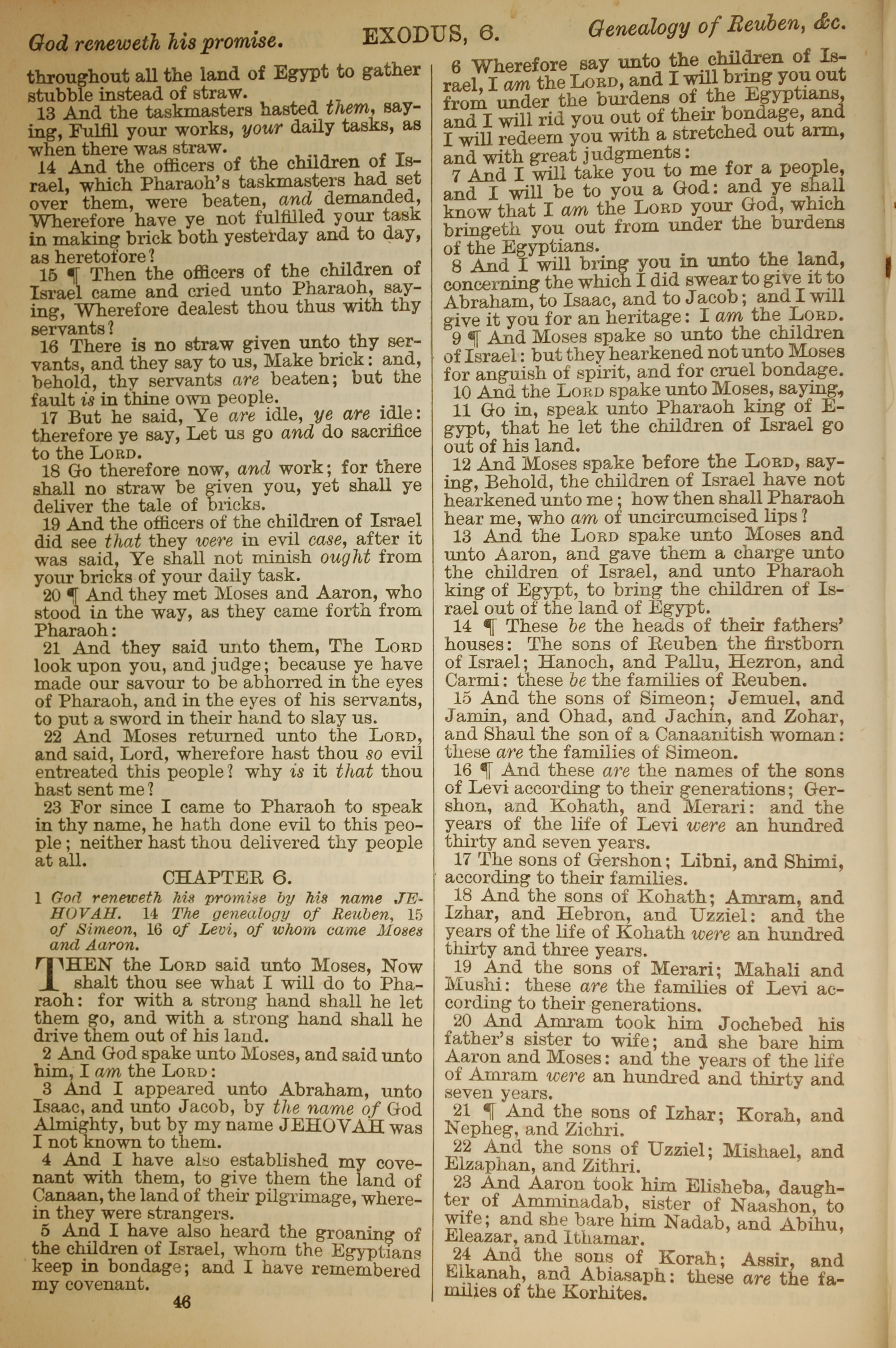 1886年英文聖經 出埃及記 5 章 13 節到 6 章 24 節
