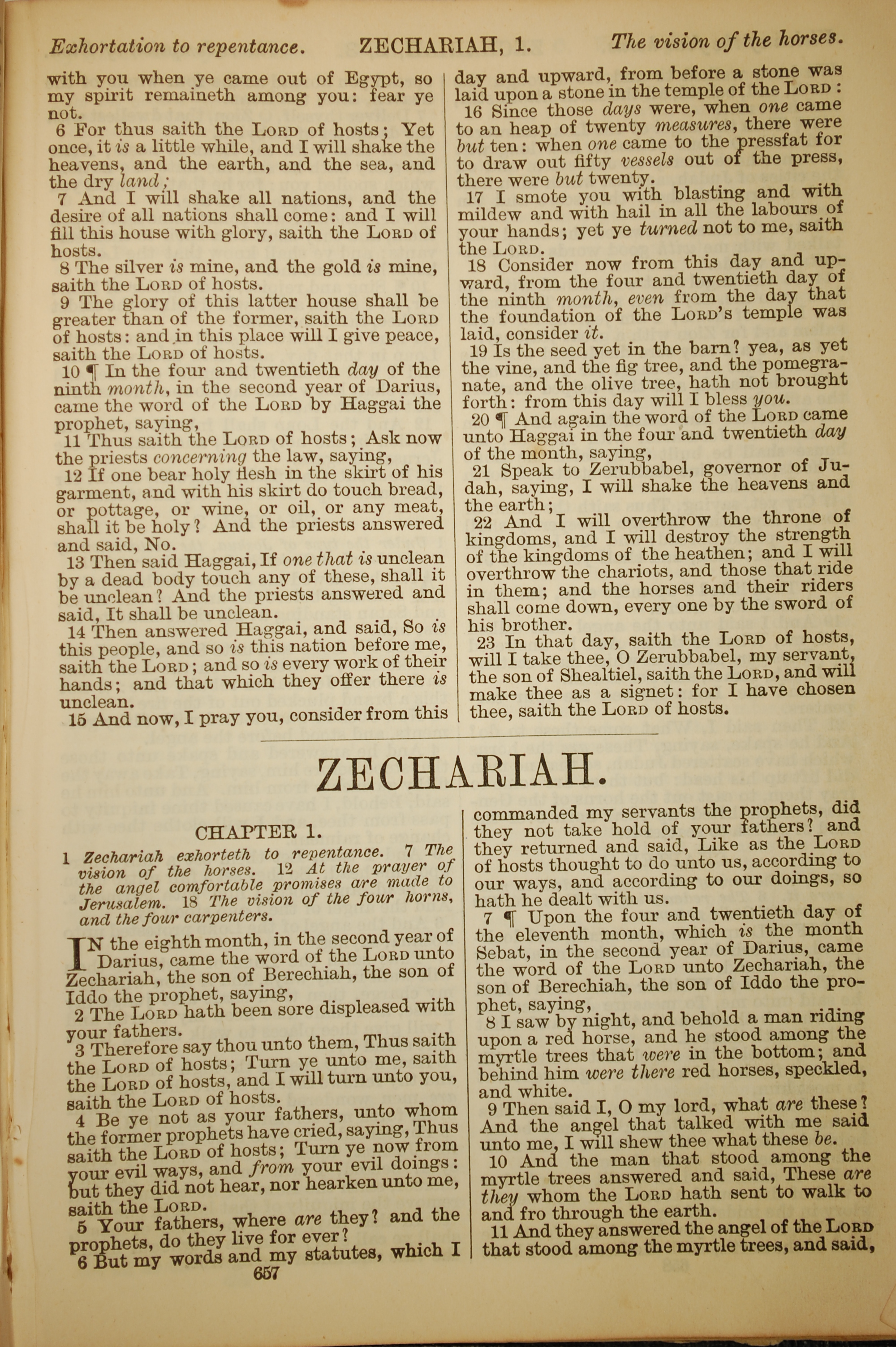 1886年英文聖經 撒迦利亞書 1 章 1 節到 1 章 11 節