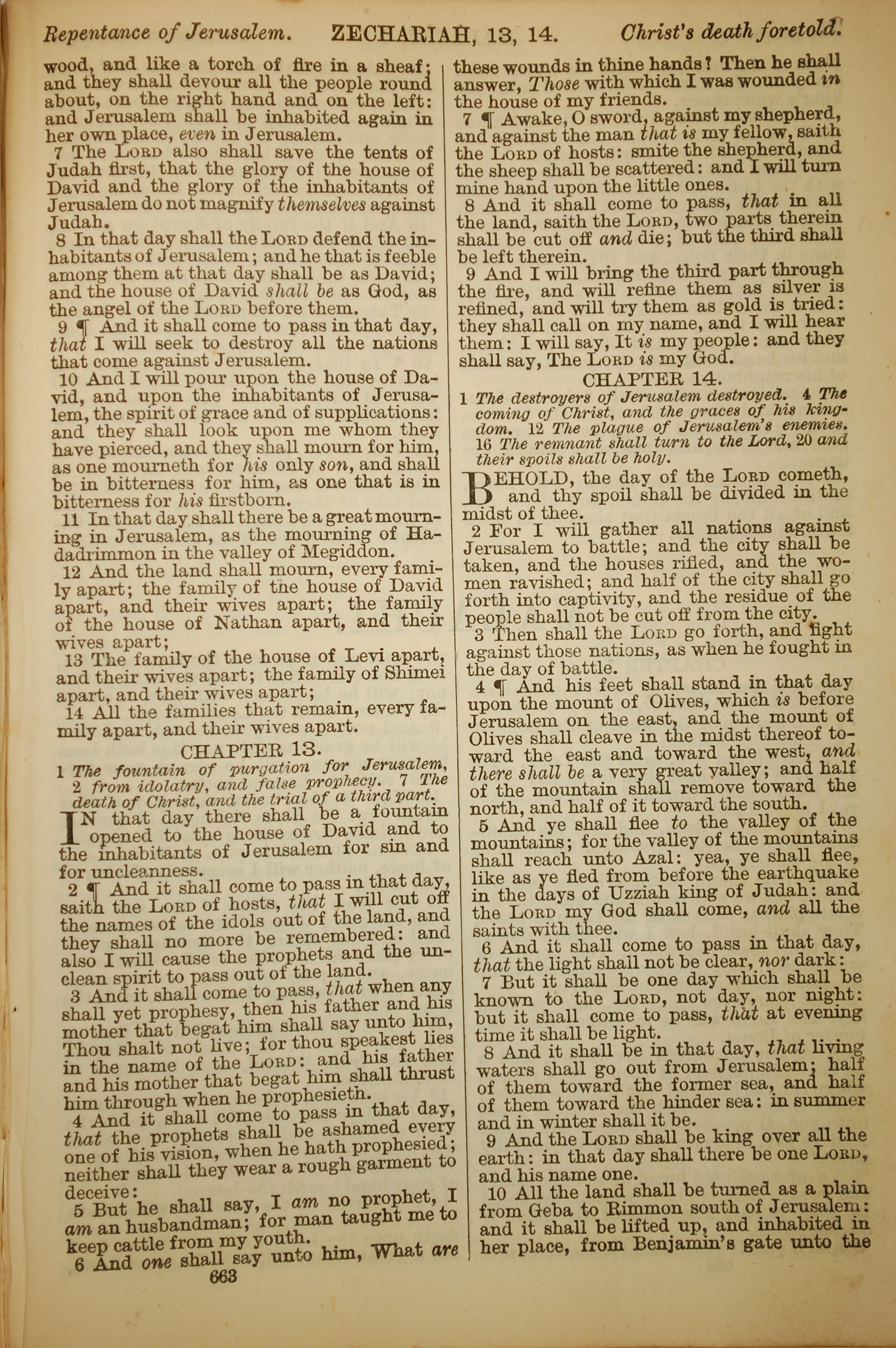 1886年英文聖經 撒迦利亞書 12 章 7 節到 14 章 10 節