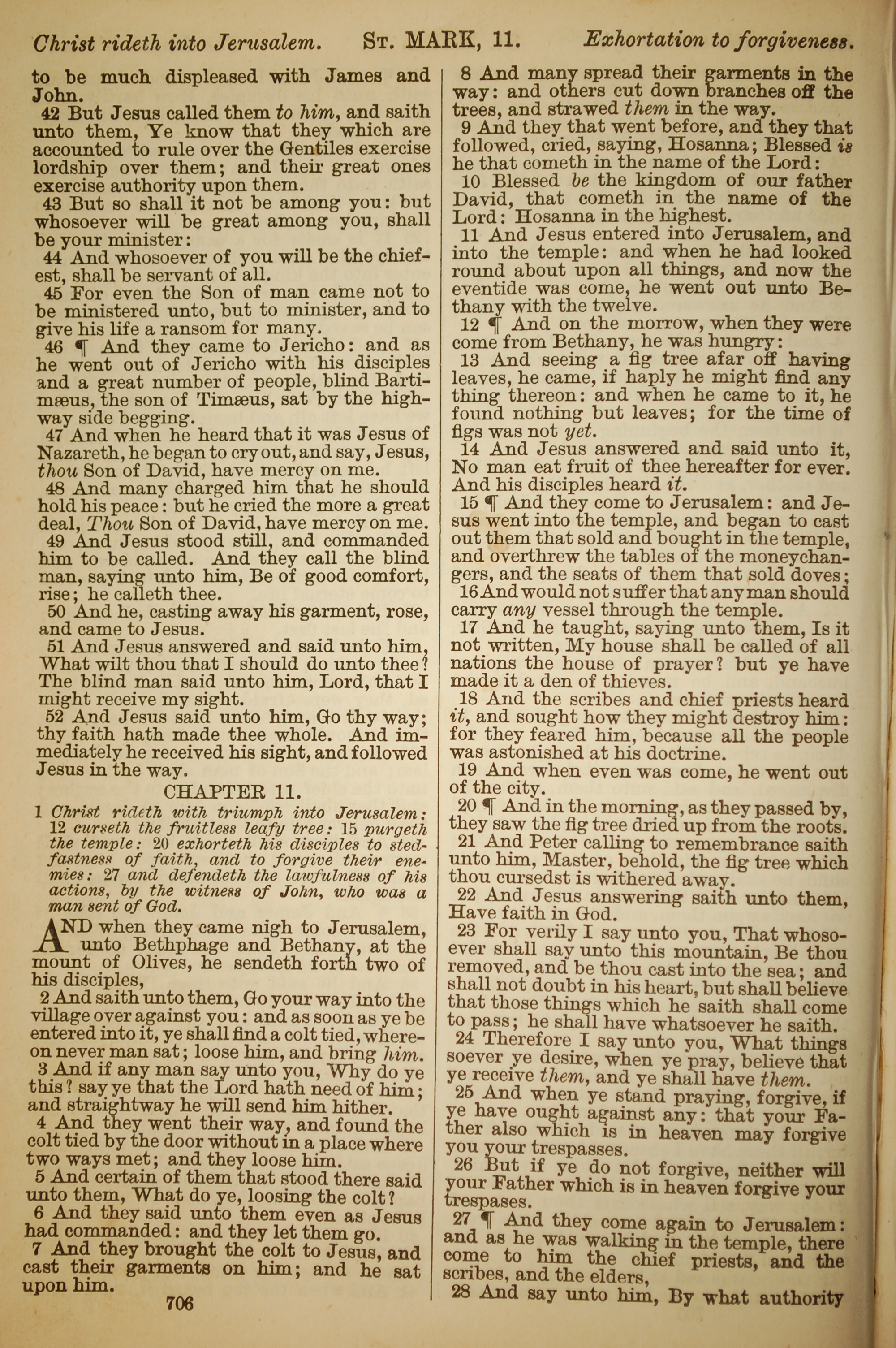 1886年英文聖經 馬可福音 10 章 42 節到 11 章 28 節