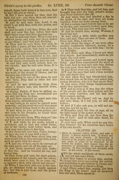 1886年英文聖經 路加福音 22 章 32 節到 23 章 3 節