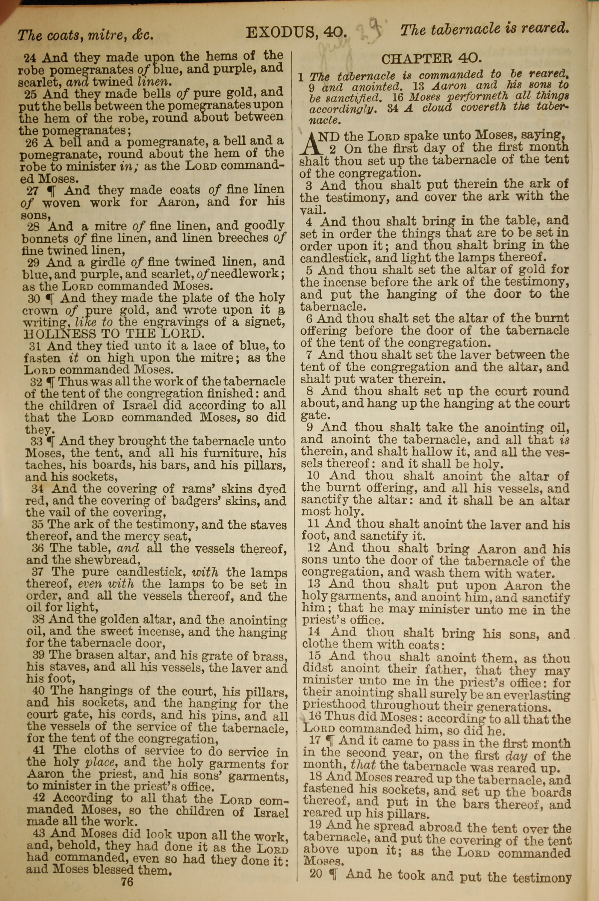 1886年英文聖經 出埃及記 39 章 24 節到 40 章 20 節