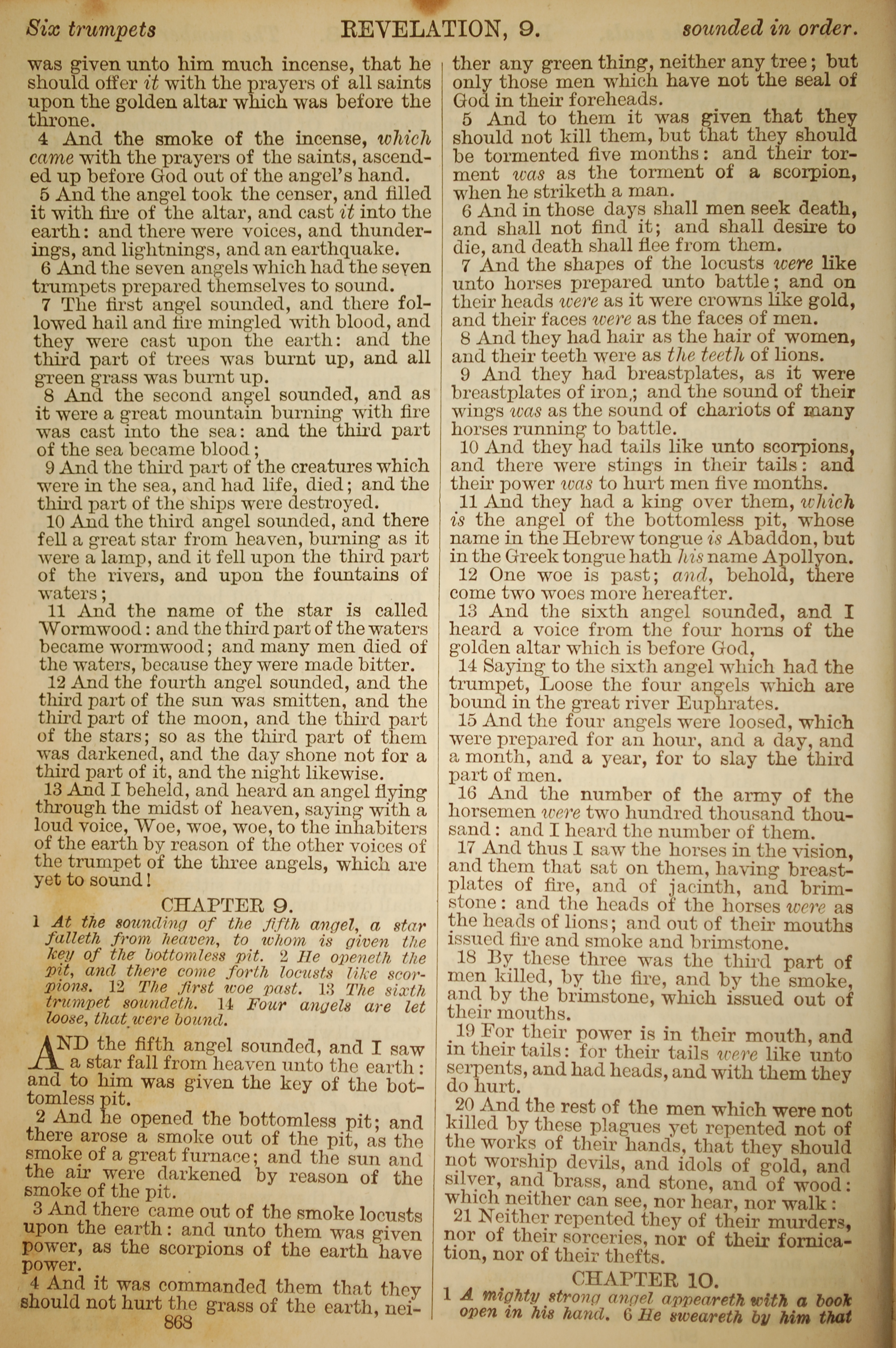 1886年英文聖經 啟示錄 8 章 4 節到 9 章 21 節