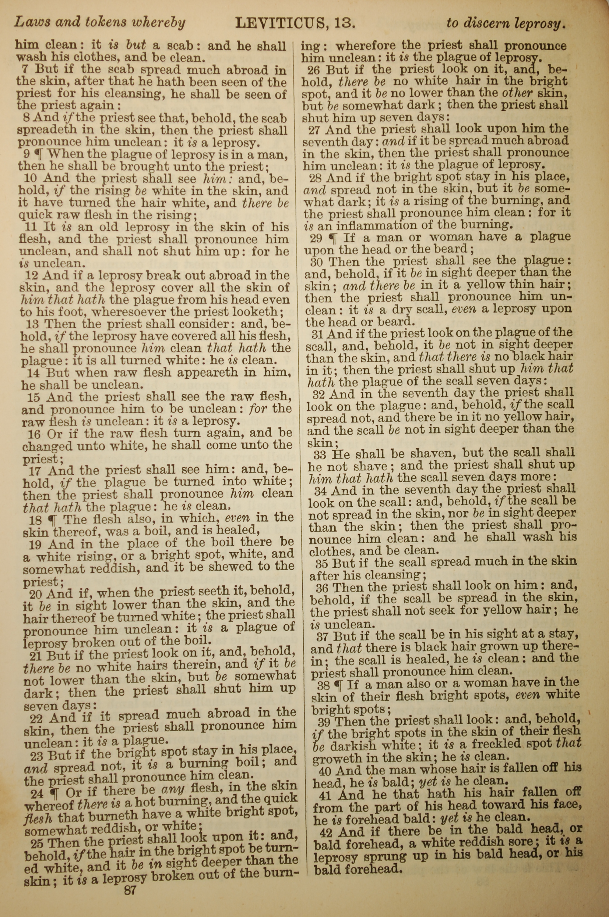1886年英文聖經 利未記 13 章 7 節到 13 章 42 節