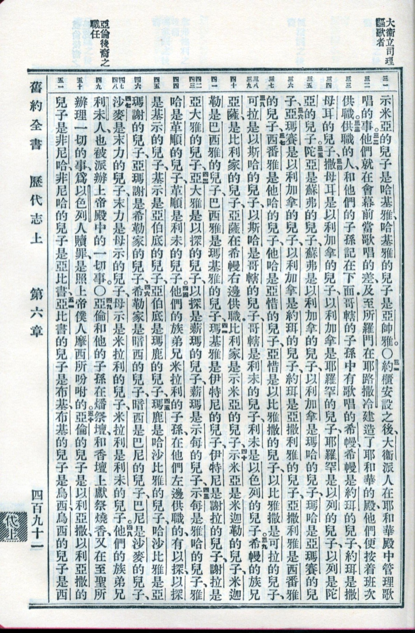 1959年新舊約全書 歷代志上 6 章 31 節到 6 章 51 節