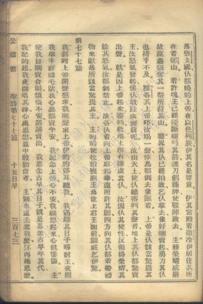1931年福建教區公禱書 詩篇 76 章 1 節到 77 章 7 節