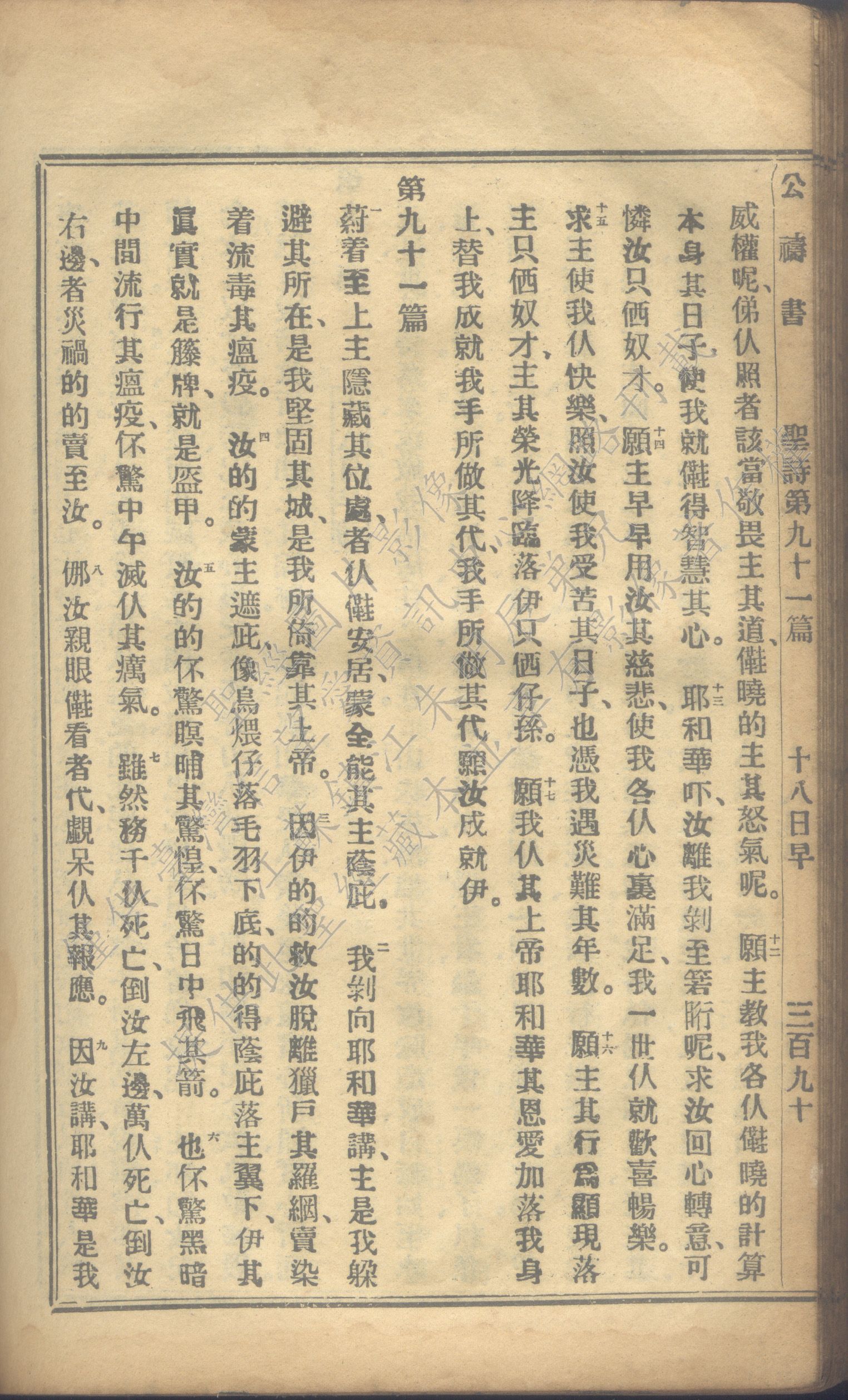 1931年福建教區公禱書 詩篇 90 章 12 節到 91 章 9 節