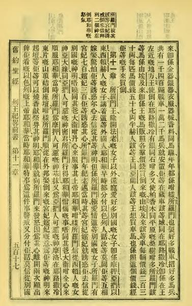 1923年客話新舊約聖經漢字版 列王紀上 10 章 25 節到 11 章 10 節