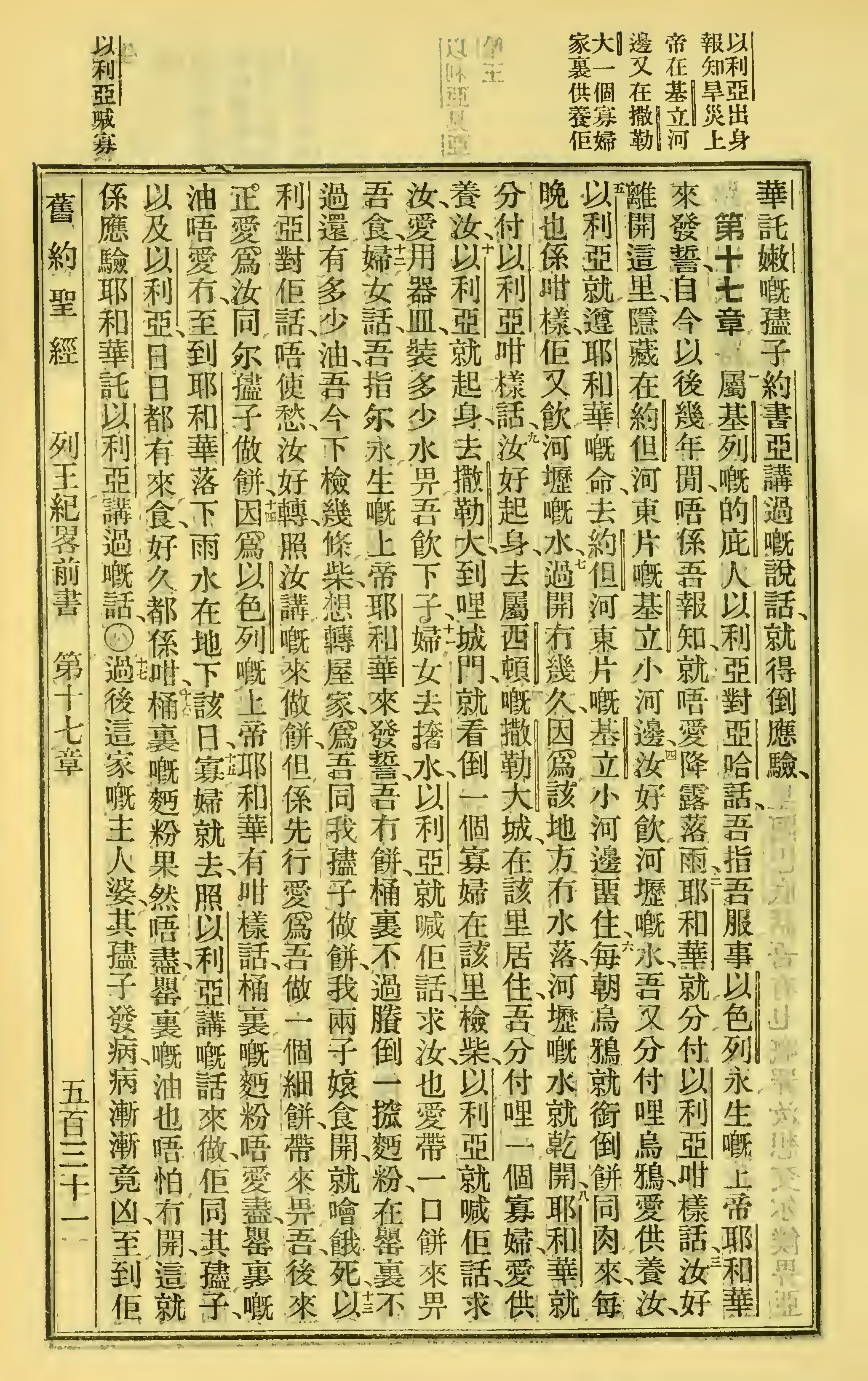 1923年客話新舊約聖經漢字版 列王紀上 17 章 1 節到 17 章 17 節