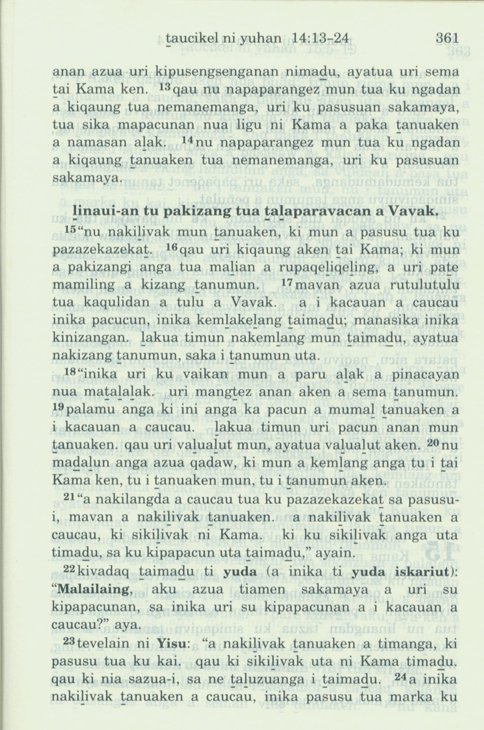 1993年新舊約全書 約翰福音 14 章 13 節到 14 章 24 節