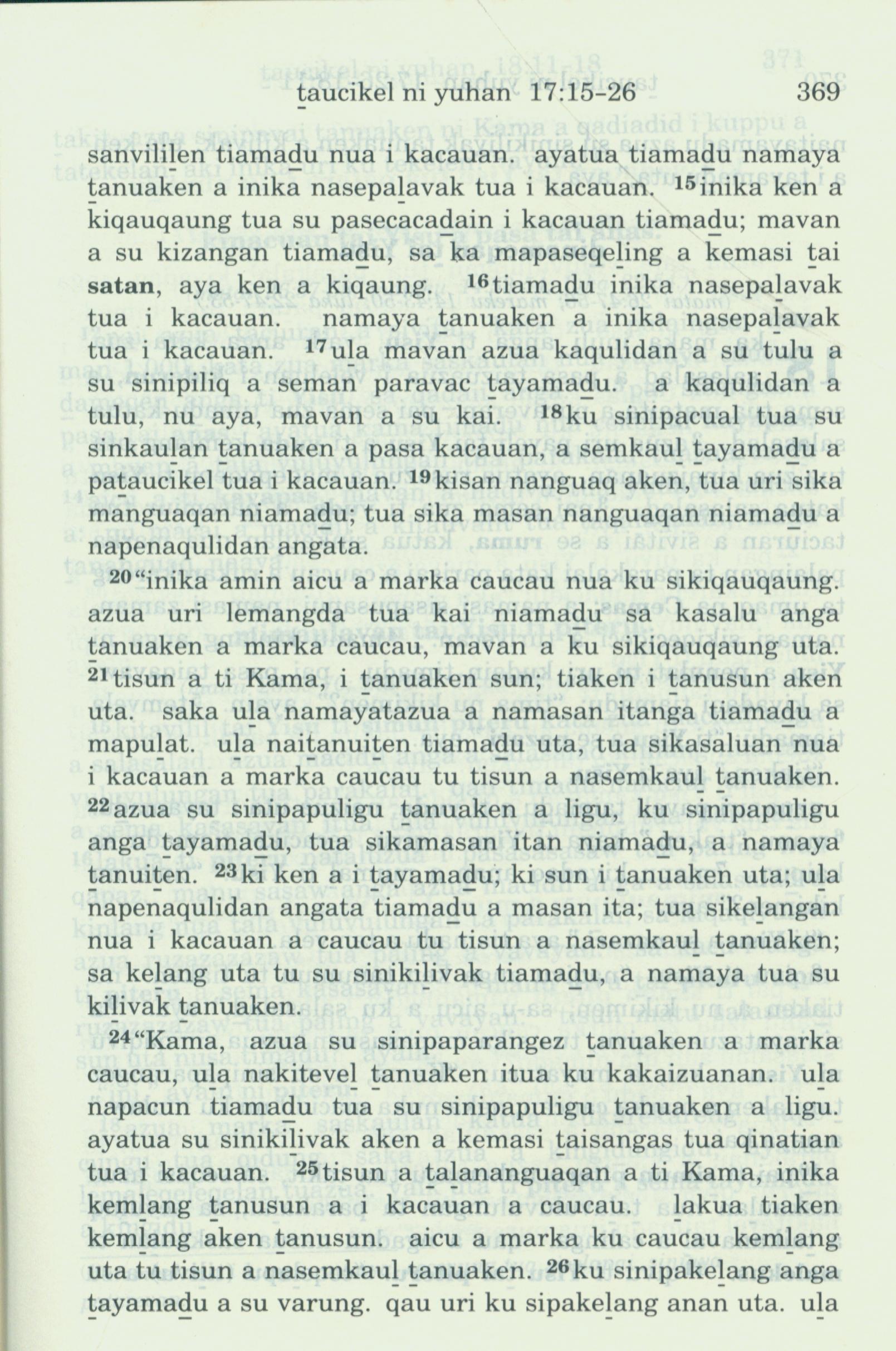 1993年新舊約全書 約翰福音 17 章 15 節到 17 章 26 節