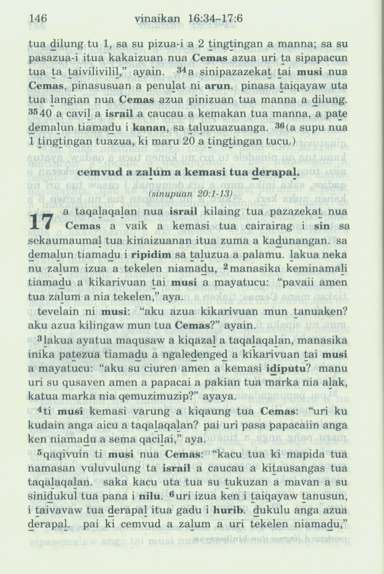 1993年新舊約全書 出埃及記 16 章 34 節到 17 章 6 節
