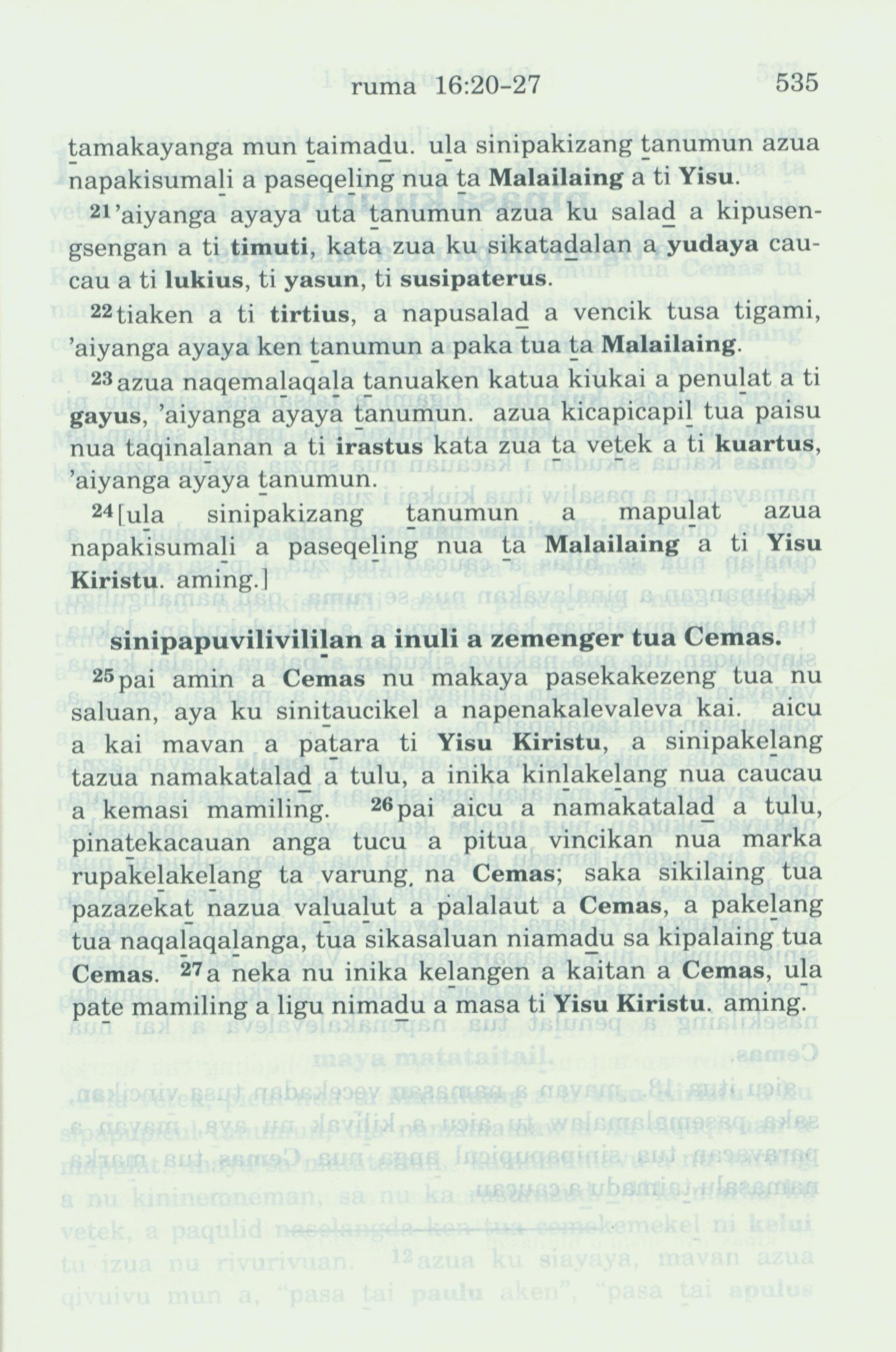 1993年新舊約全書 羅馬書 16 章 21 節到 16 章 27 節