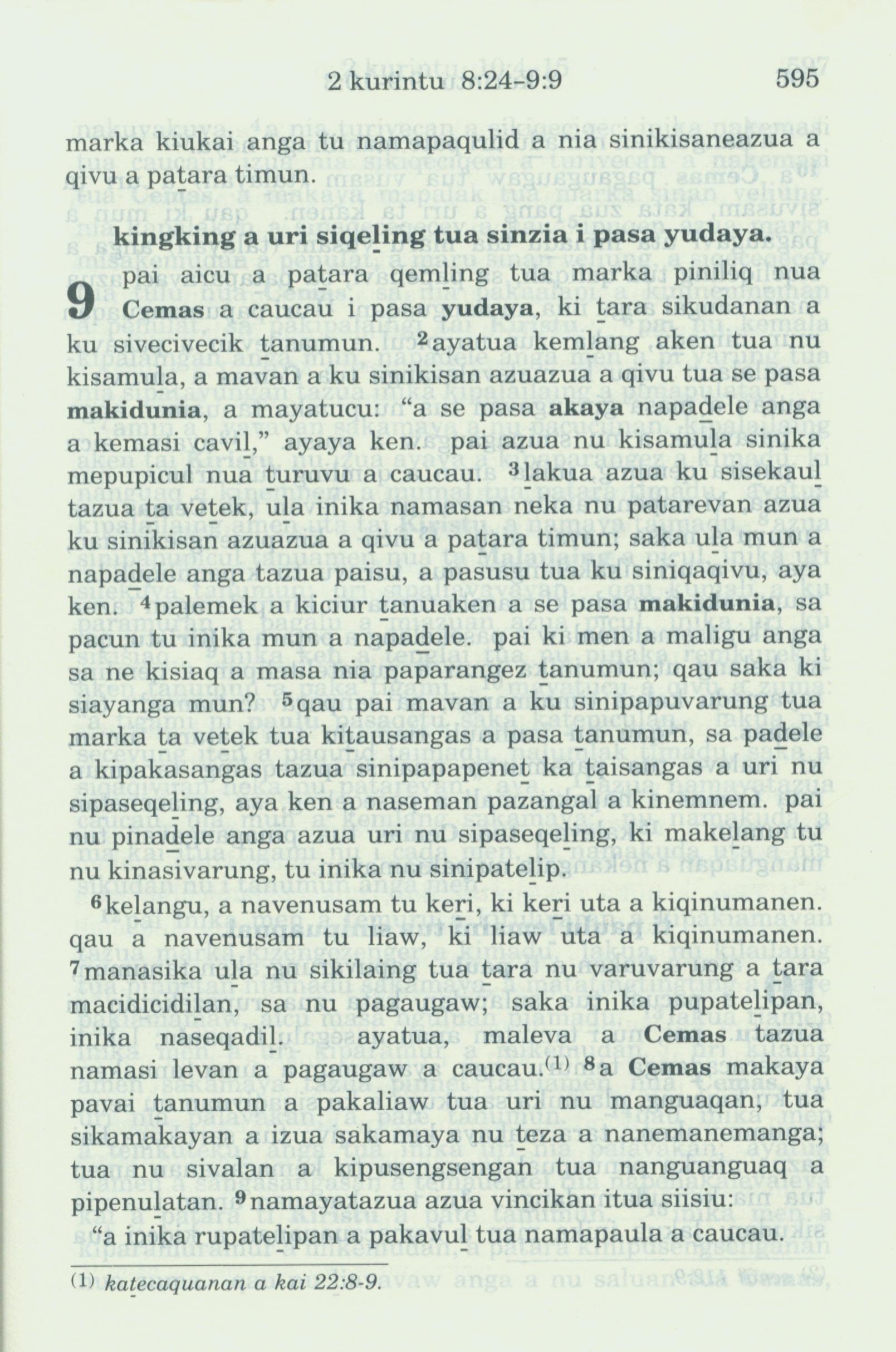 1993年新舊約全書 哥林多後書 9 章 1 節到 9 章 9 節