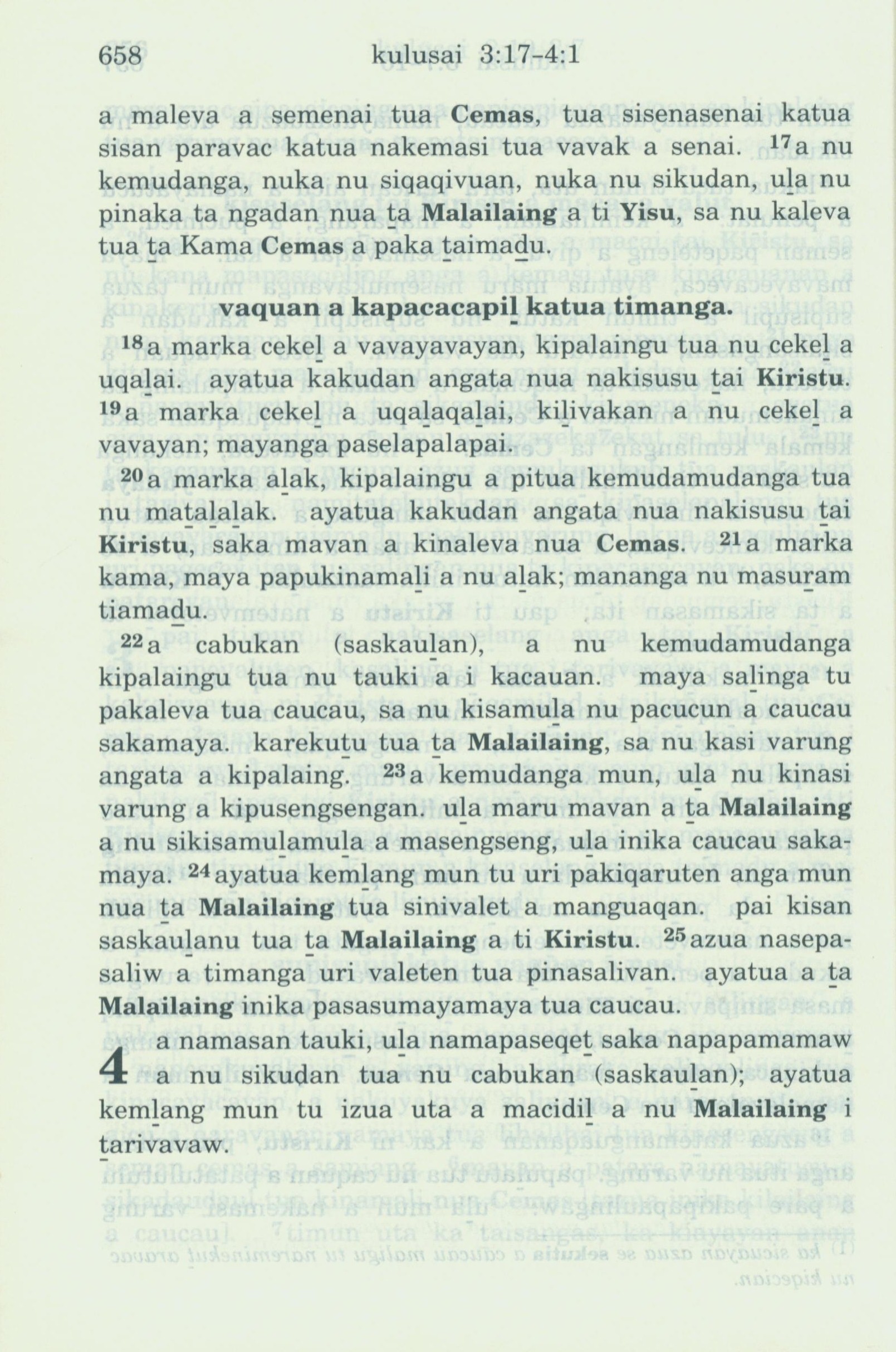 1993年新舊約全書 歌羅西書 3 章 17 節到 4 章 1 節