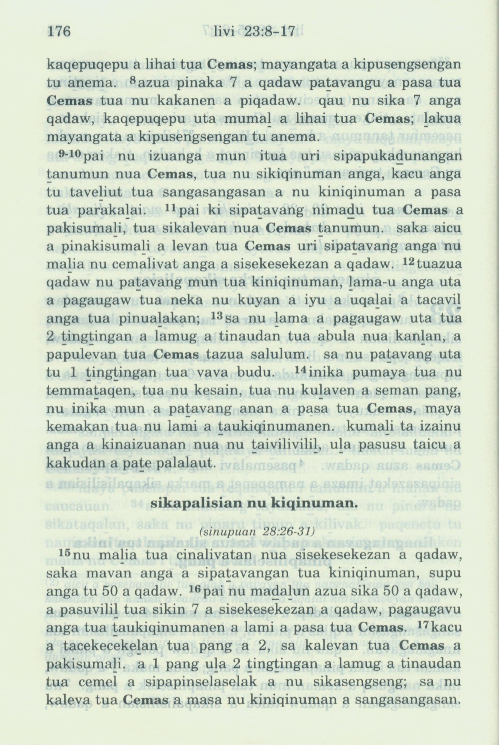 1993年新舊約全書 利未記 23 章 8 節到 23 章 17 節