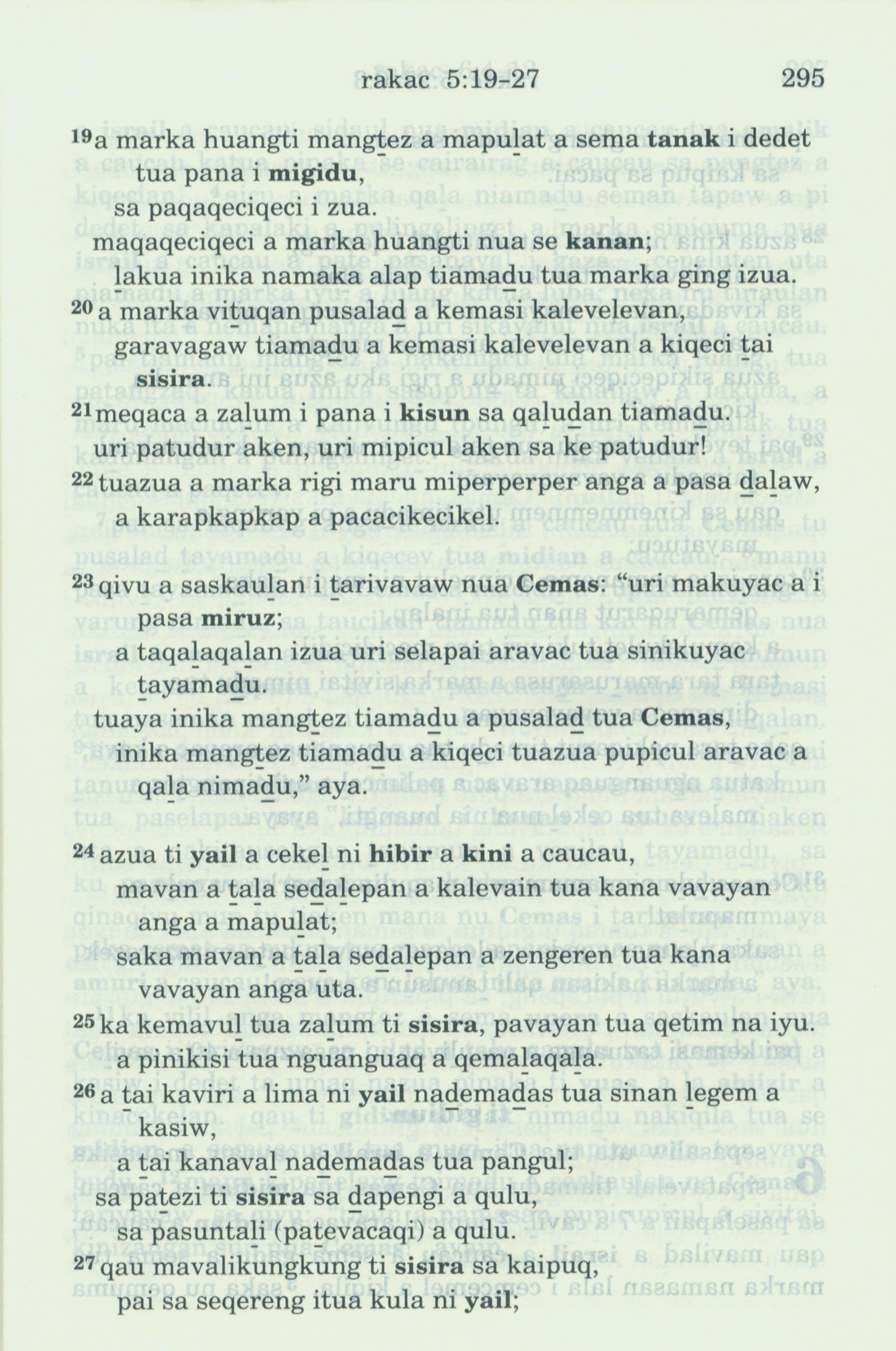 1993年新舊約全書 士師記 5 章 19 節到 5 章 27 節