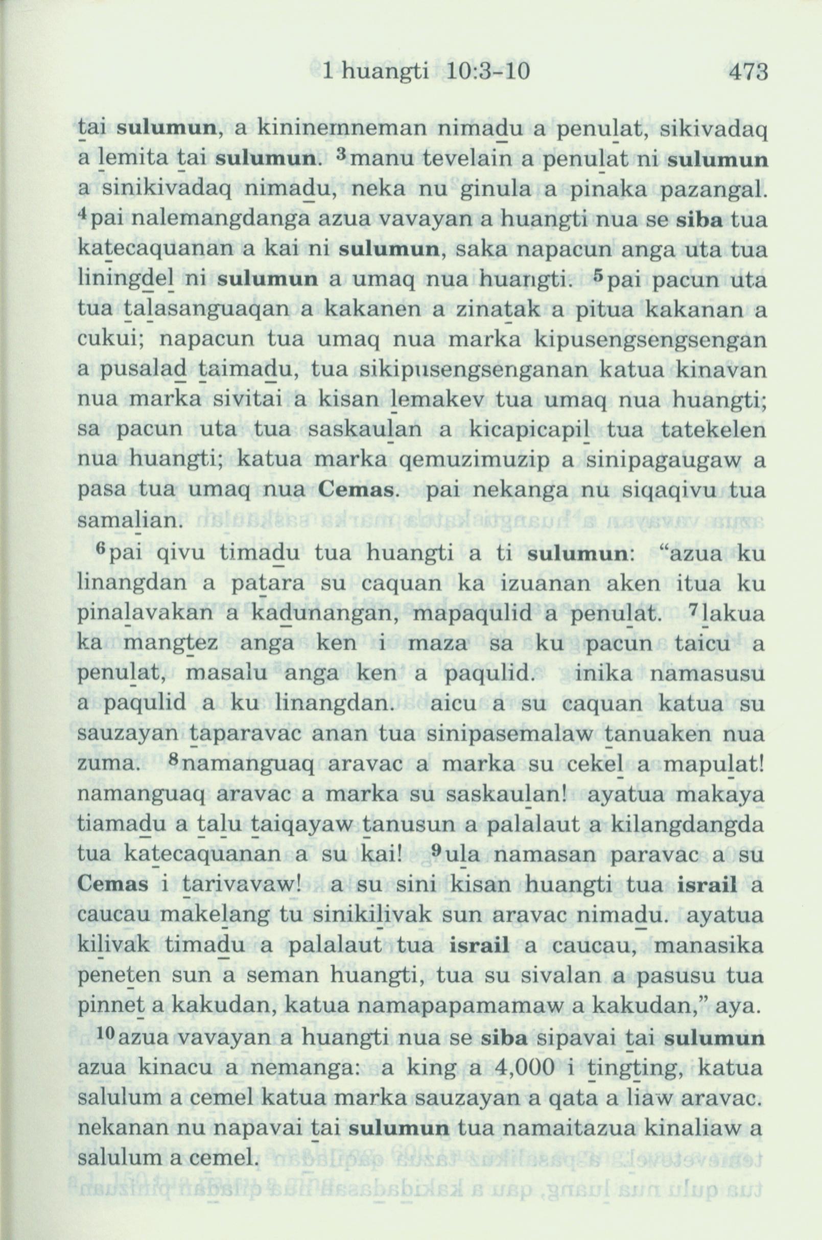 1993年新舊約全書 列王紀上 10 章 3 節到 10 章 10 節
