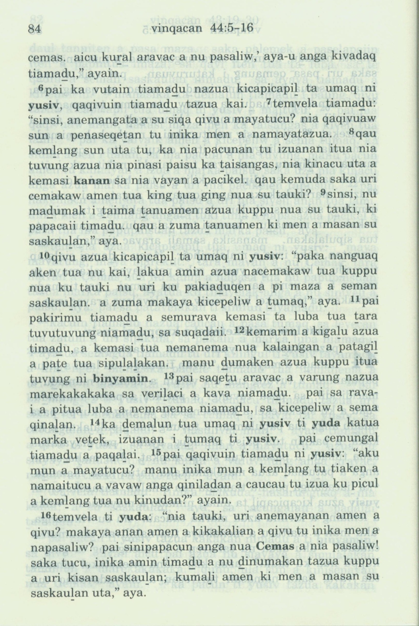 1993年新舊約全書 創世記 44 章 6 節到 44 章 16 節