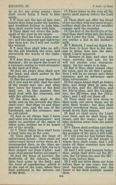 1946年King James Version 出埃及記 23 章 5 節到 23 章 29 節