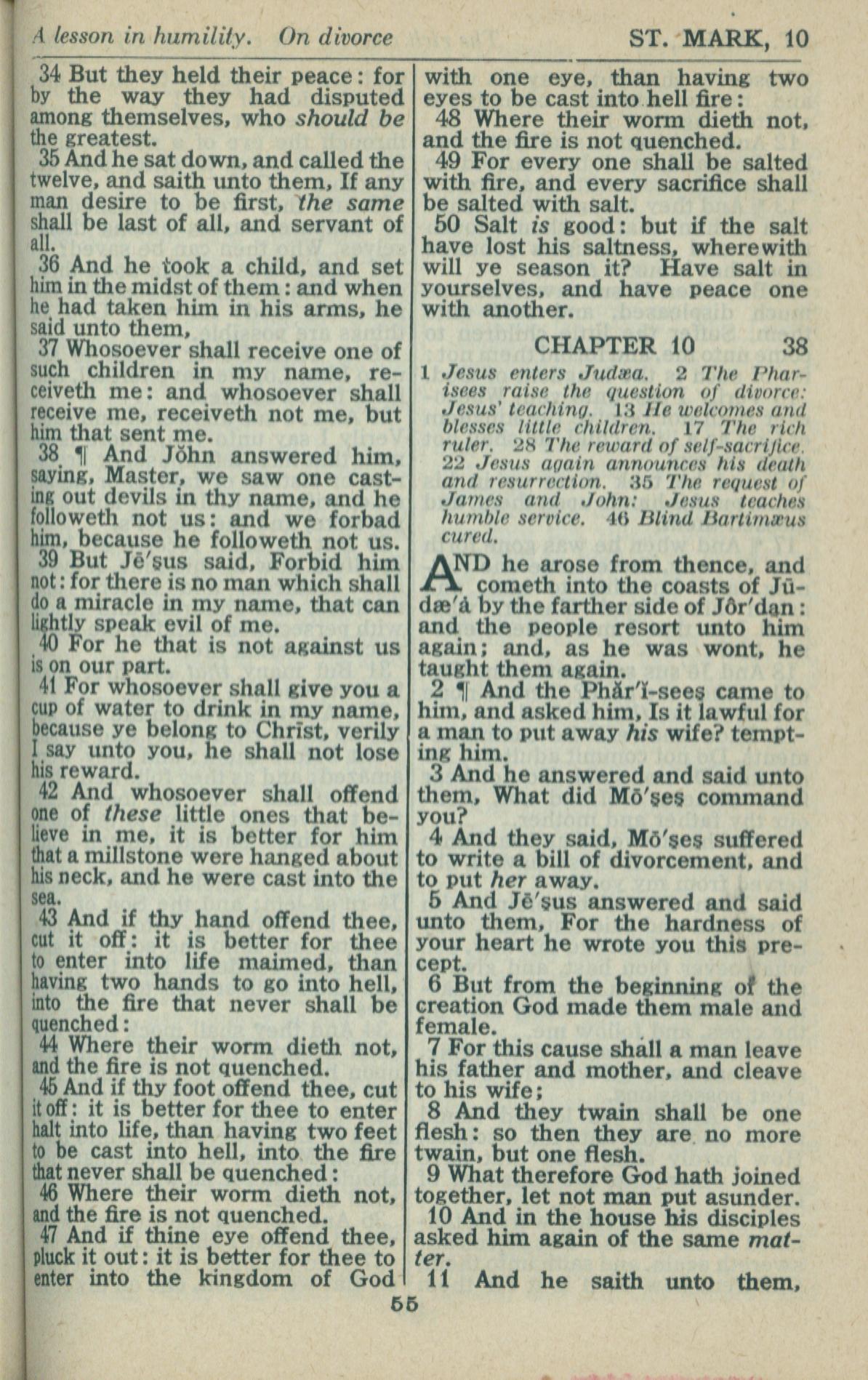1946年King James Version 馬可福音 9 章 34 節到 10 章 11 節