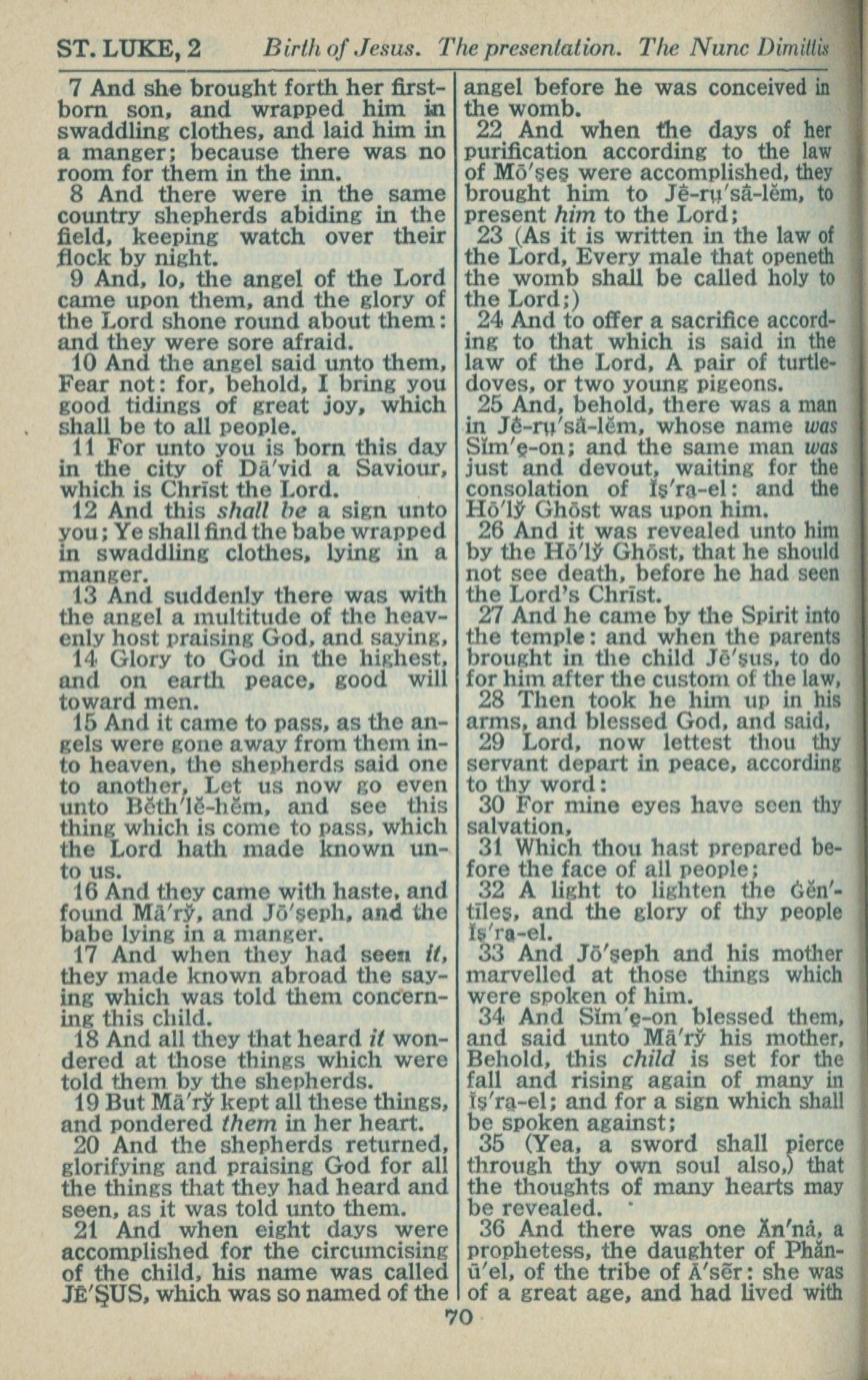 1946年King James Version 路加福音 2 章 7 節到 2 章 36 節