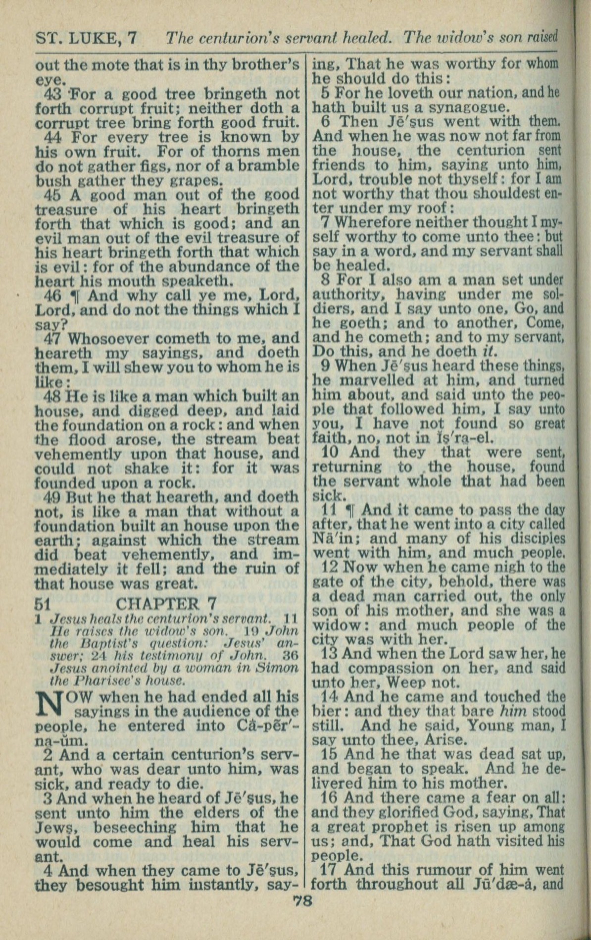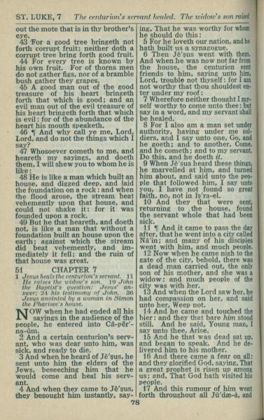 1946年King James Version 路加福音 6 章 43 節到 7 章 17 節