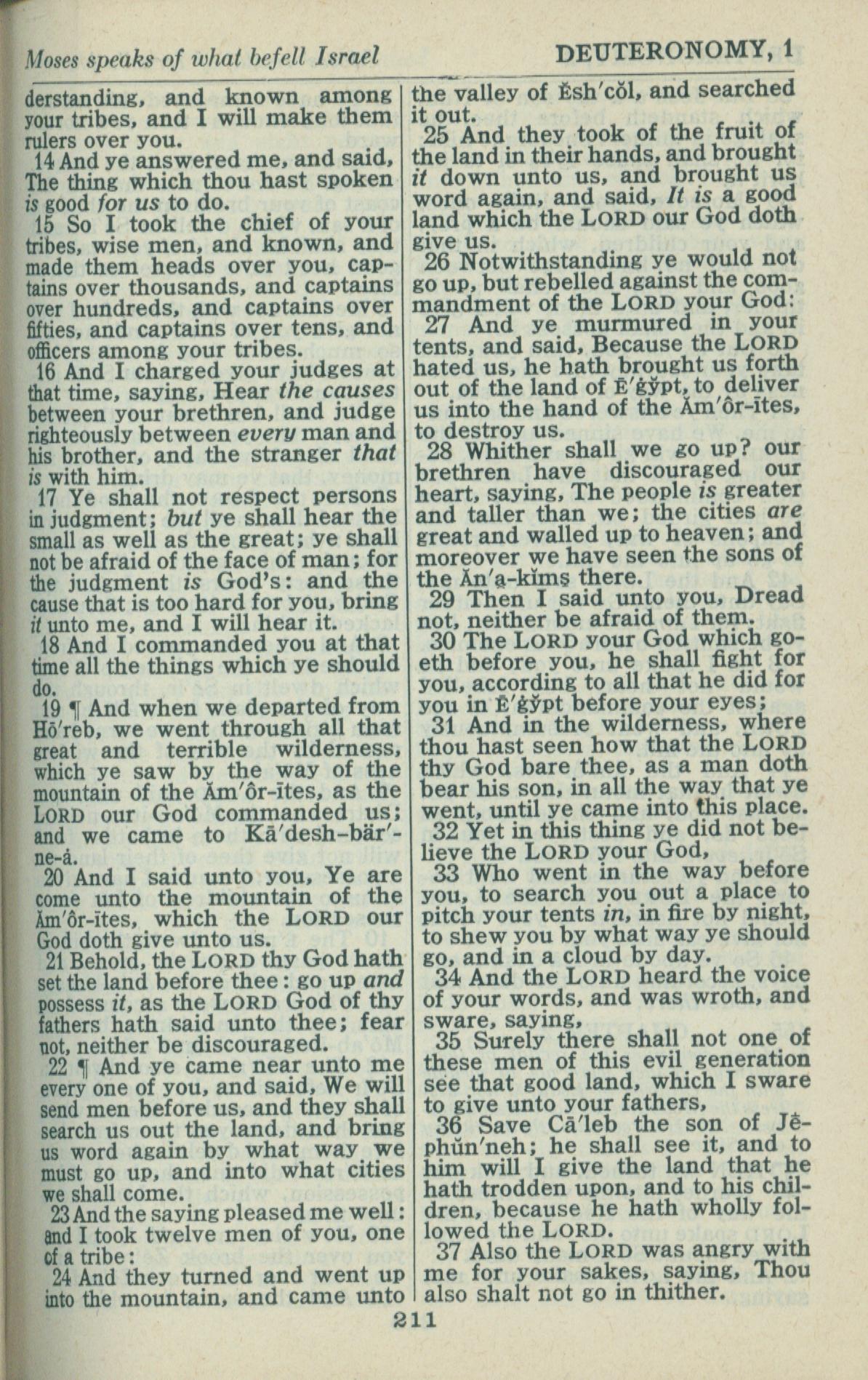 1946年King James Version 申命記 1 章 14 節到 1 章 37 節
