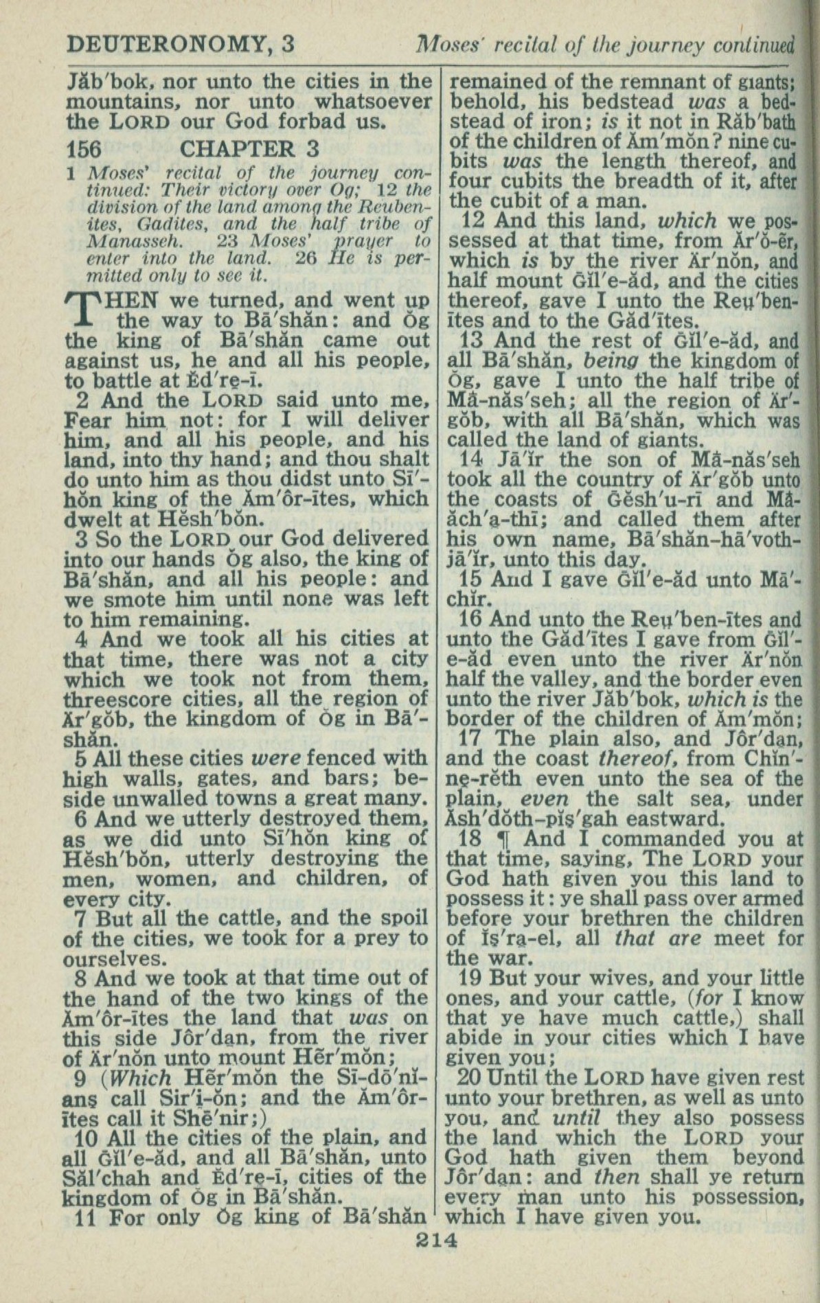 1946年King James Version 申命記 3 章 1 節到 3 章 20 節