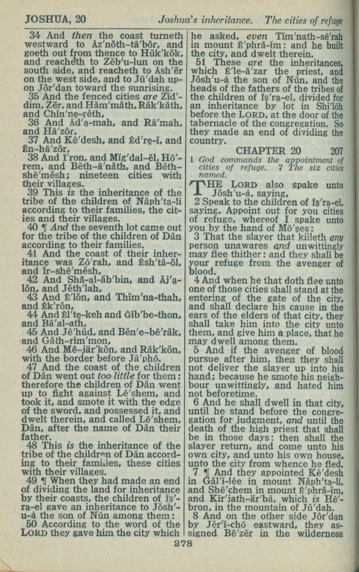 1946年King James Version 約書亞記 19 章 34 節到 20 章 8 節