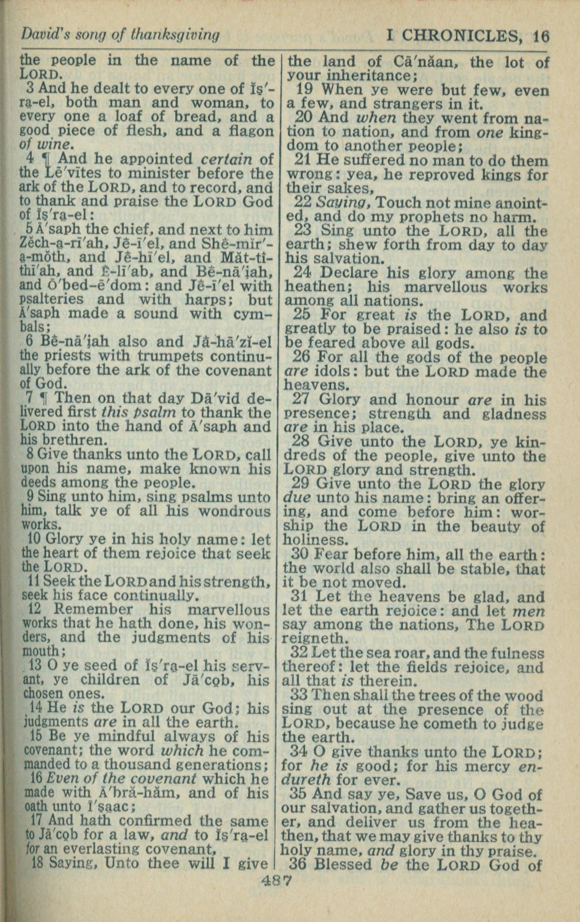 1946年King James Version 歷代志上 16 章 3 節到 16 章 36 節