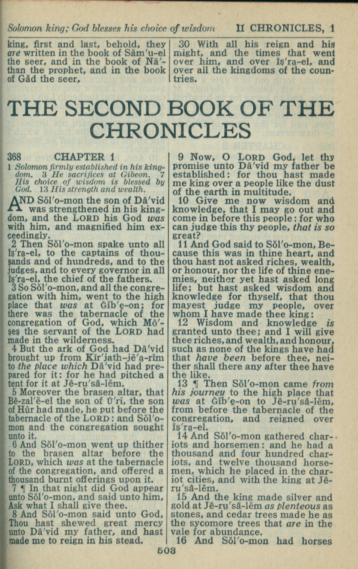 1946年King James Version 歷代志下 1 章 1 節到 1 章 16 節