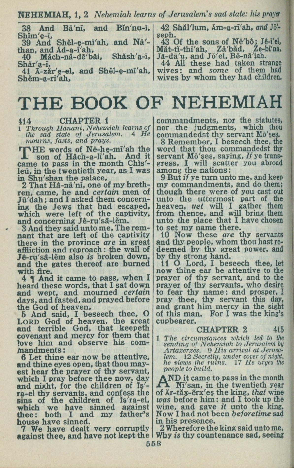 1946年King James Version 尼希米記 1 章 1 節到 2 章 2 節