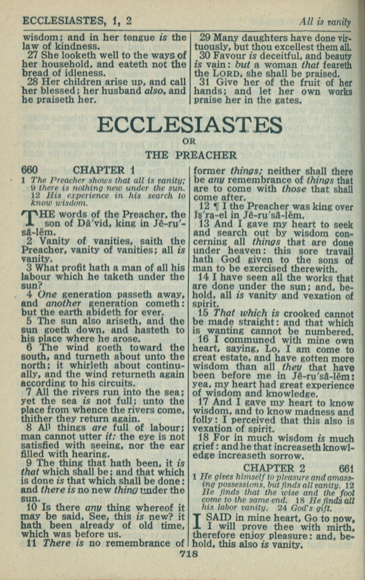 1946年King James Version 傳道書 1 章 1 節到 2 章 1 節