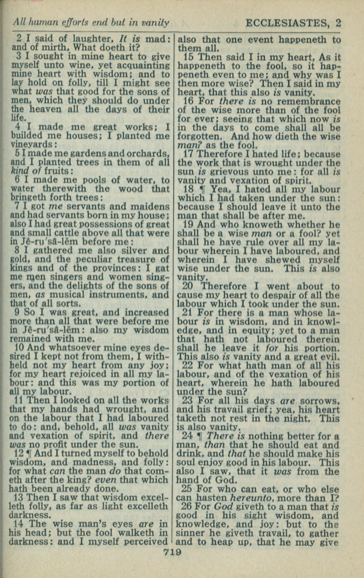 1946年King James Version 傳道書 2 章 2 節到 2 章 26 節
