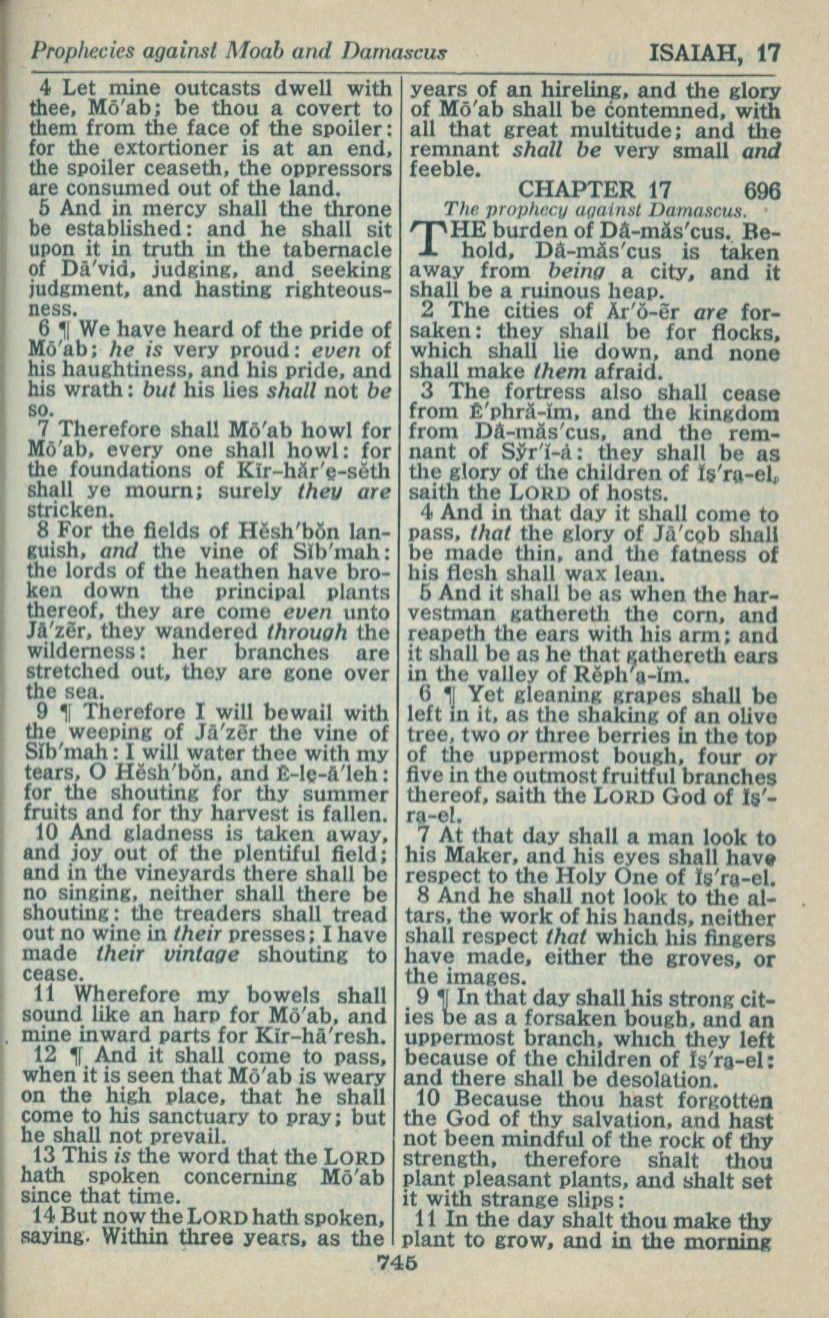 1946年King James Version 以賽亞書 16 章 4 節到 17 章 11 節