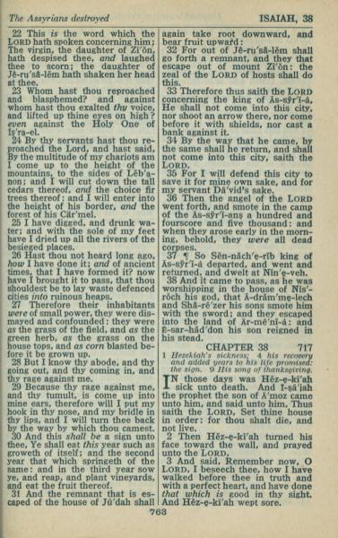 1946年King James Version 以賽亞書 37 章 22 節到 38 章 3 節