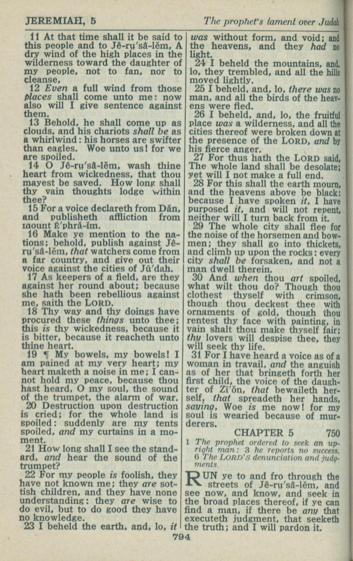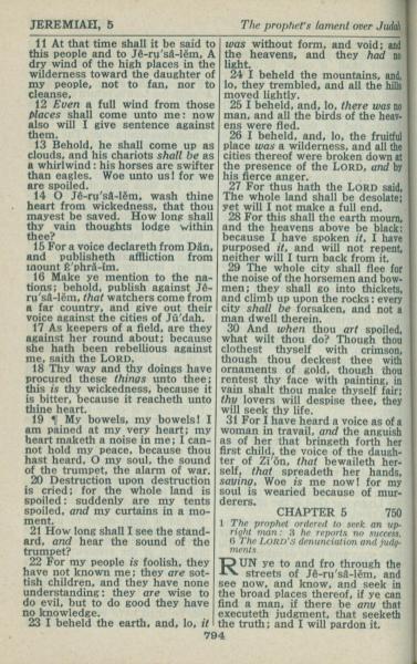 1946年King James Version 耶利米書 4 章 11 節到 5 章 1 節