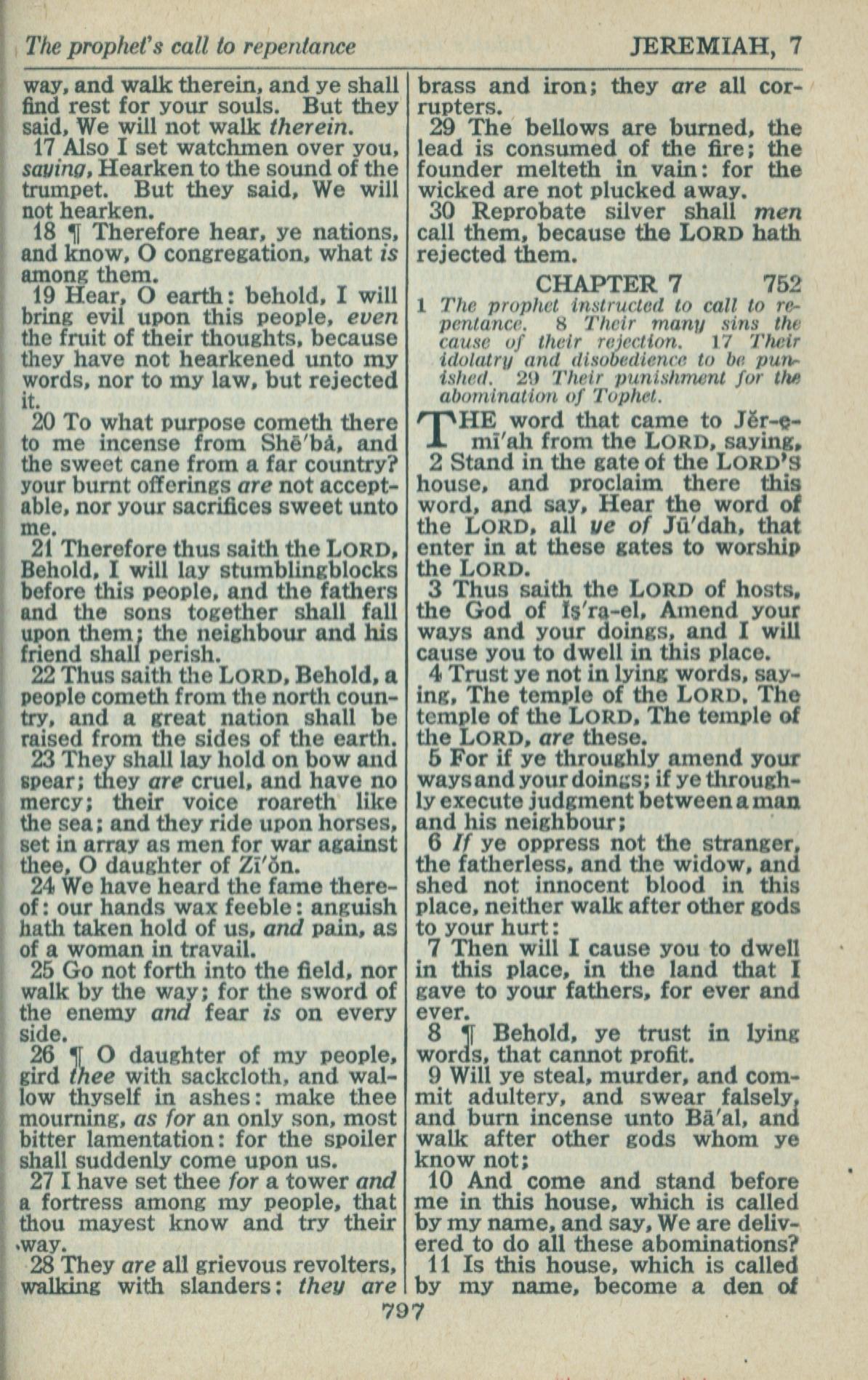1946年King James Version 耶利米書 6 章 17 節到 7 章 11 節