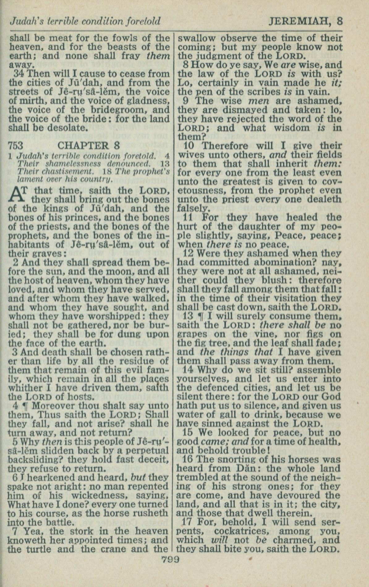 1946年King James Version 耶利米書 7 章 34 節到 8 章 17 節
