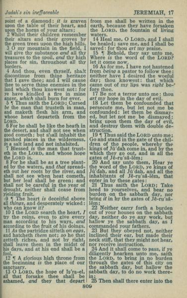 1946年King James Version 耶利米書 17 章 2 節到 17 章 25 節