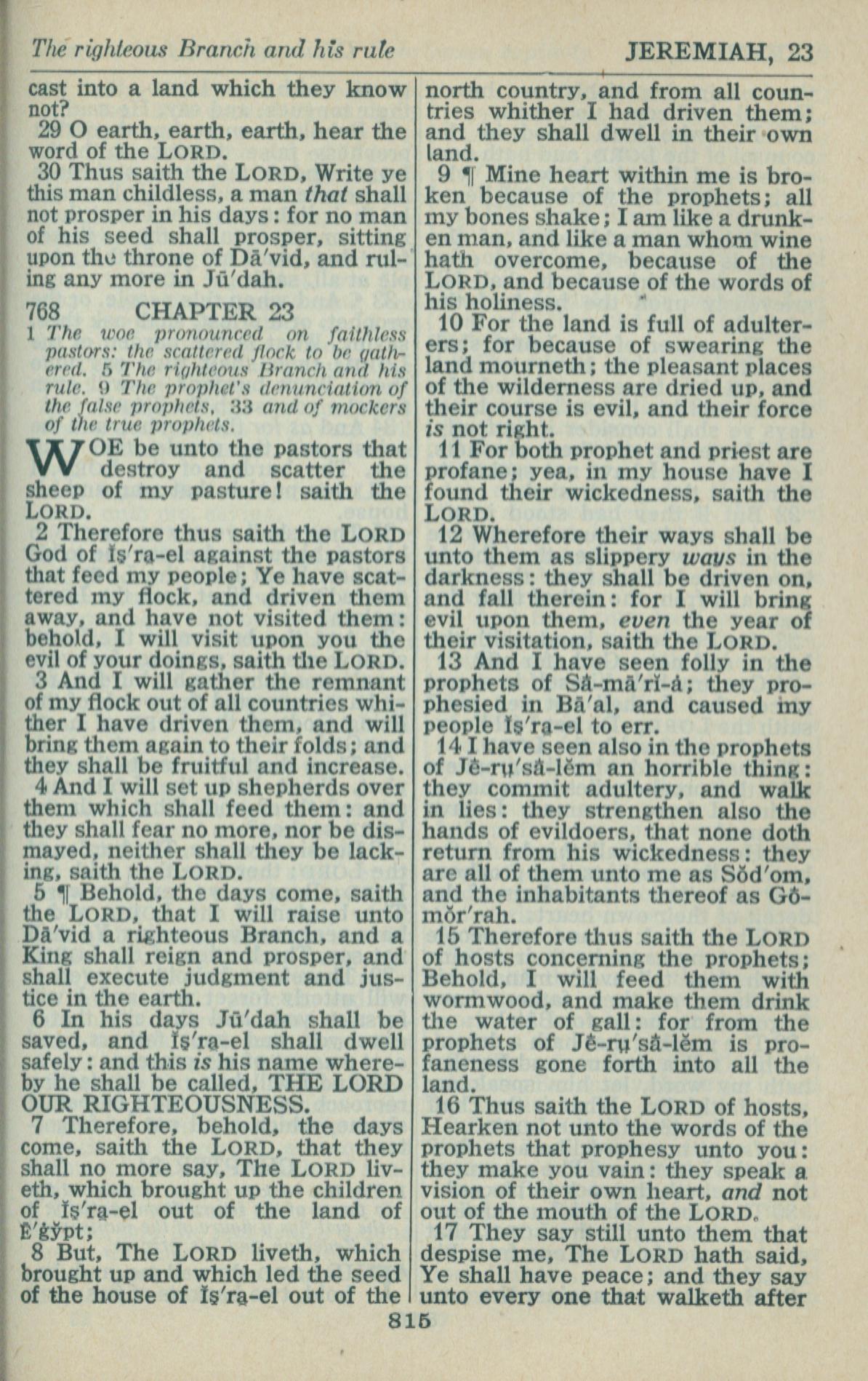 1946年King James Version 耶利米書 22 章 29 節到 23 章 17 節