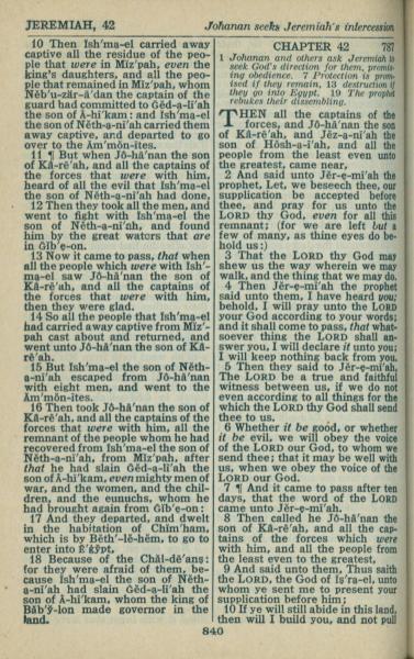 1946年King James Version 耶利米書 41 章 10 節到 42 章 10 節