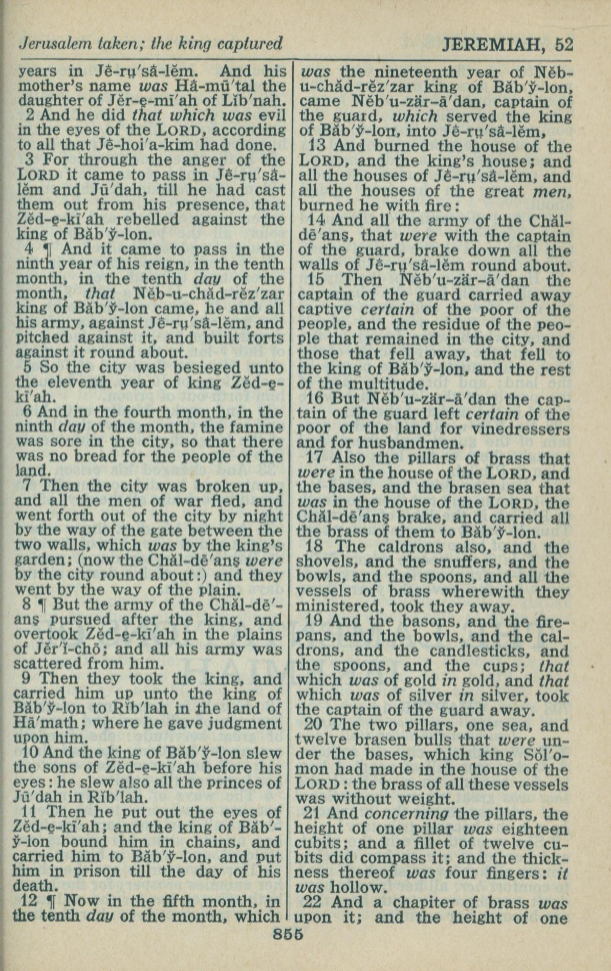 1946年King James Version 耶利米書 52 章 2 節到 52 章 22 節