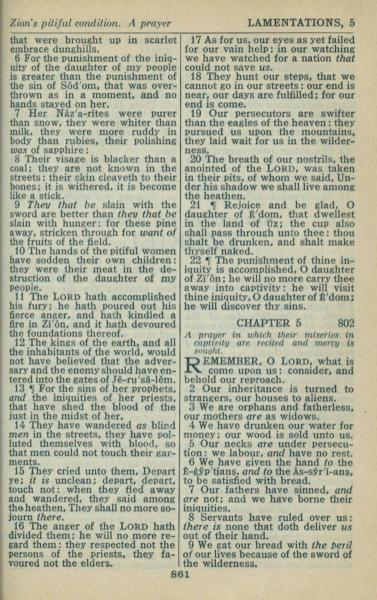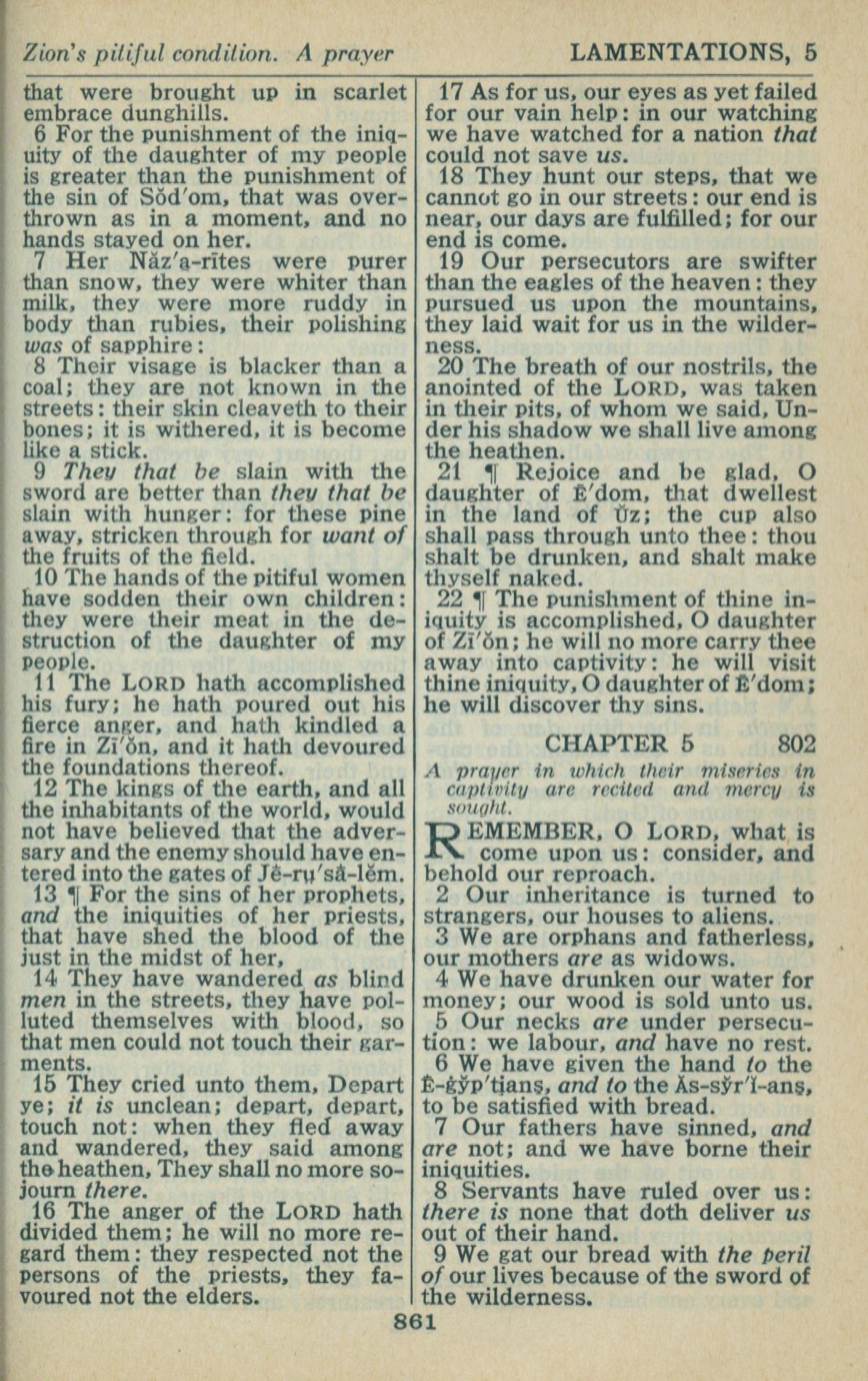 1946年King James Version 耶利米哀歌 4 章 6 節到 5 章 9 節