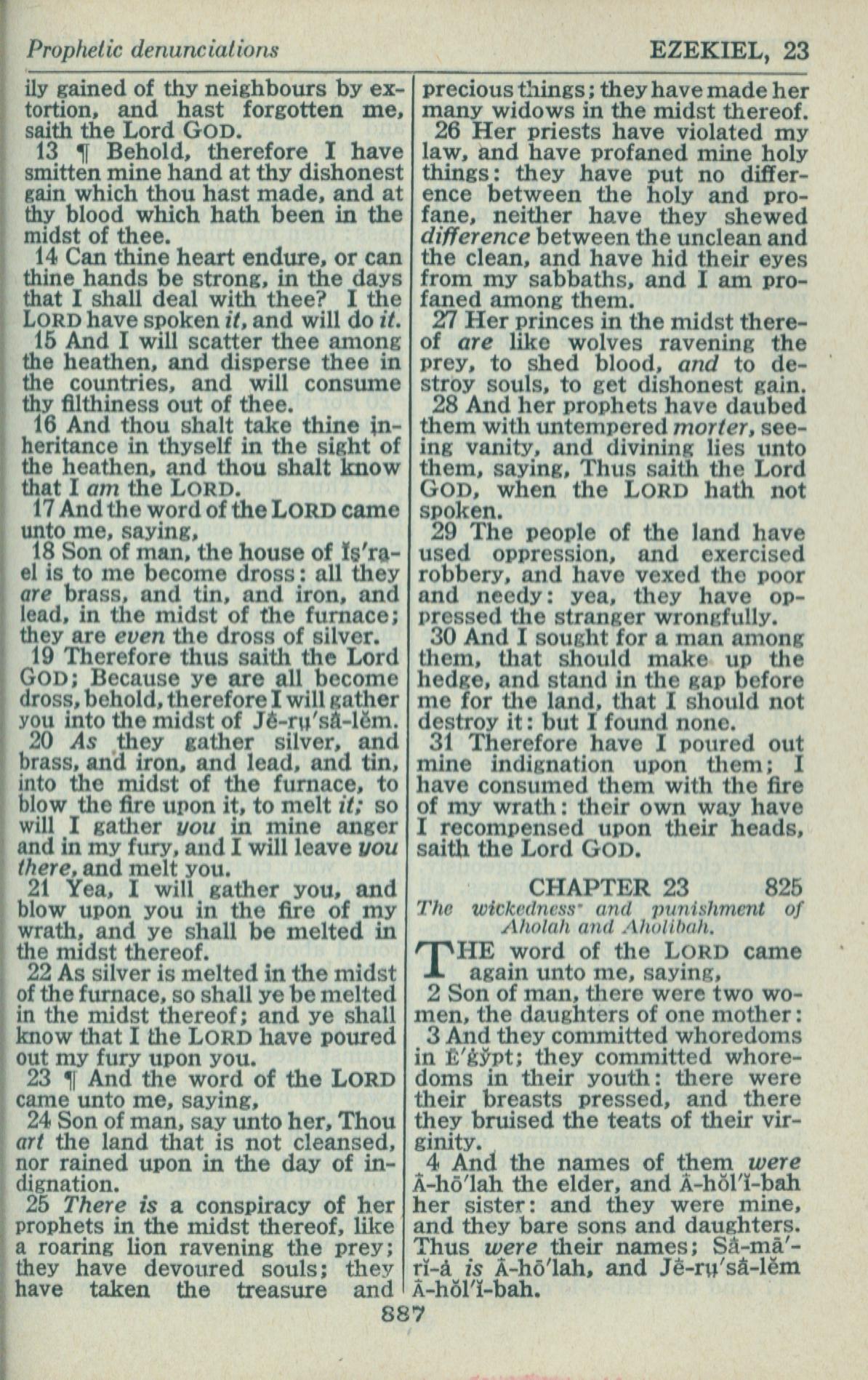 1946年King James Version 以西結書 22 章 13 節到 23 章 4 節