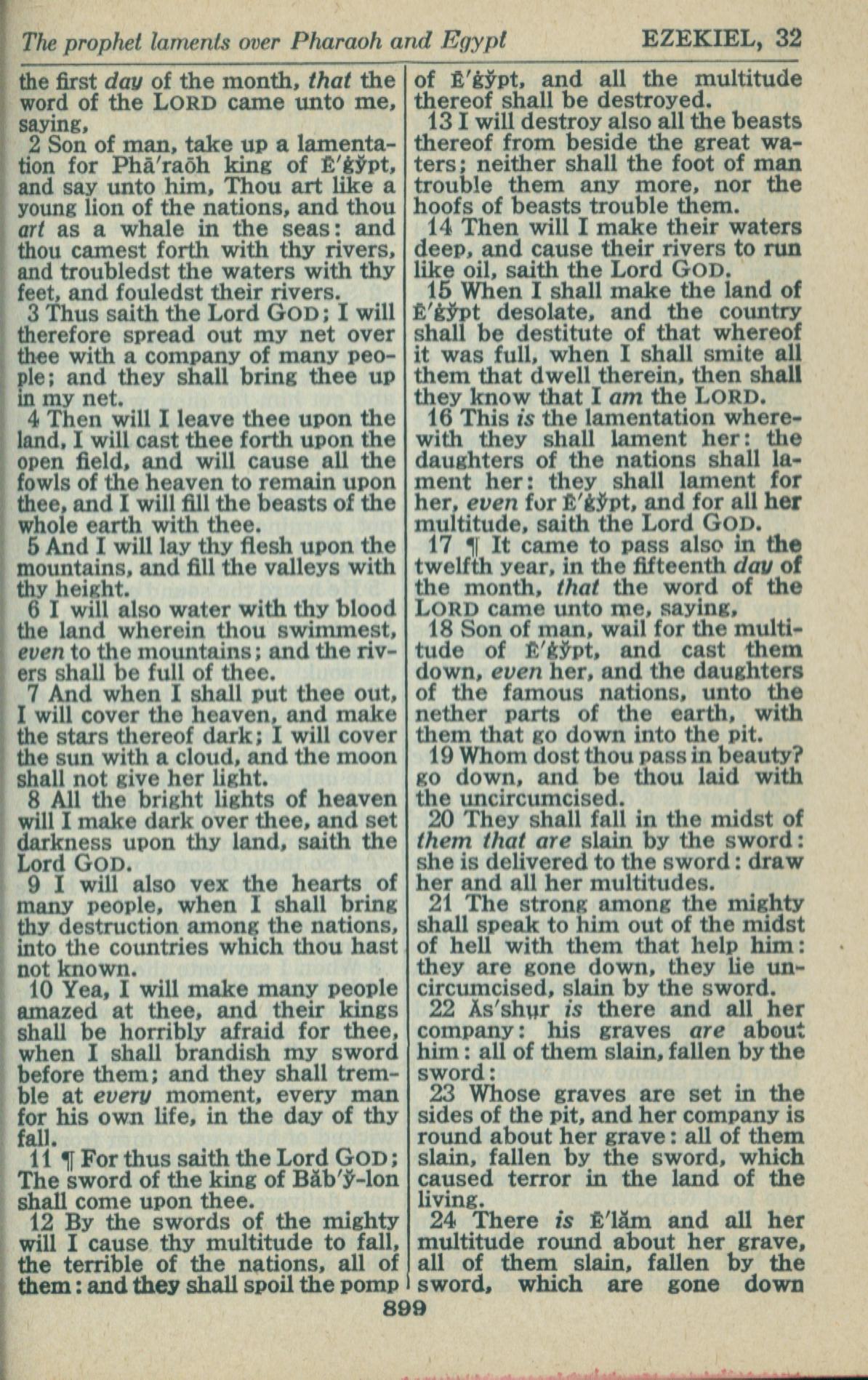 1946年King James Version 以西結書 32 章 2 節到 32 章 24 節